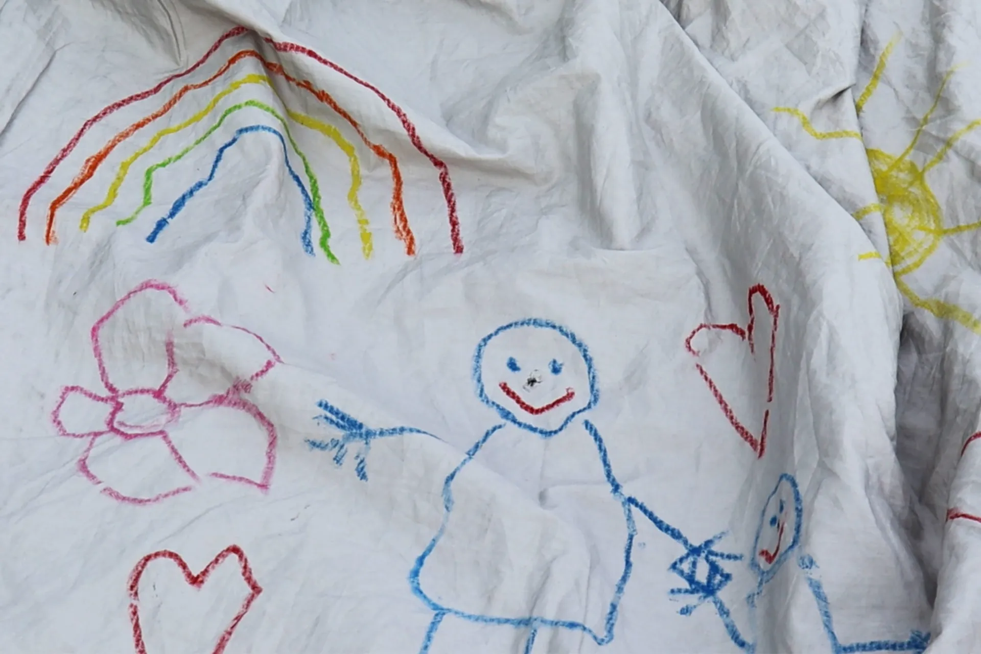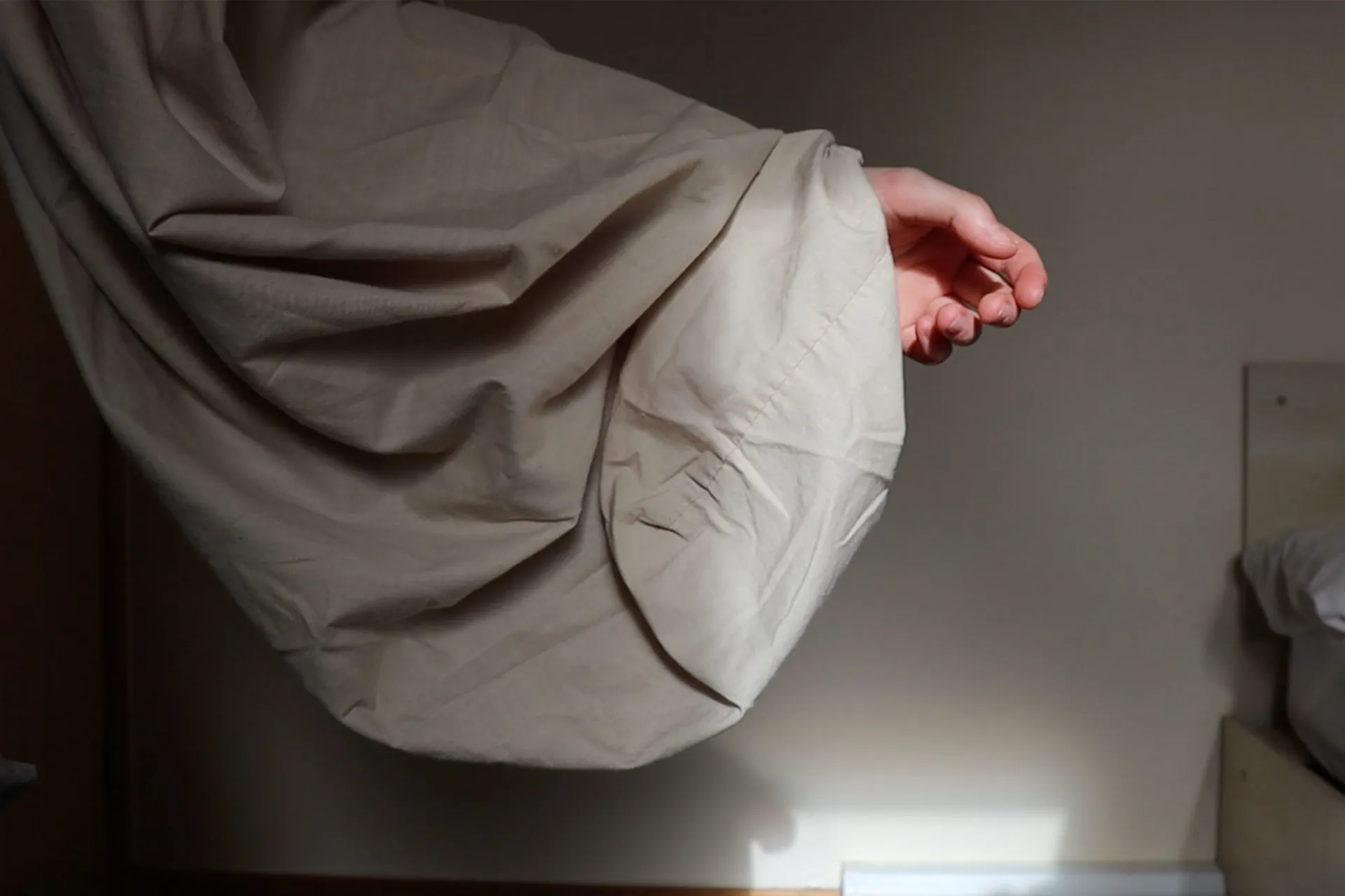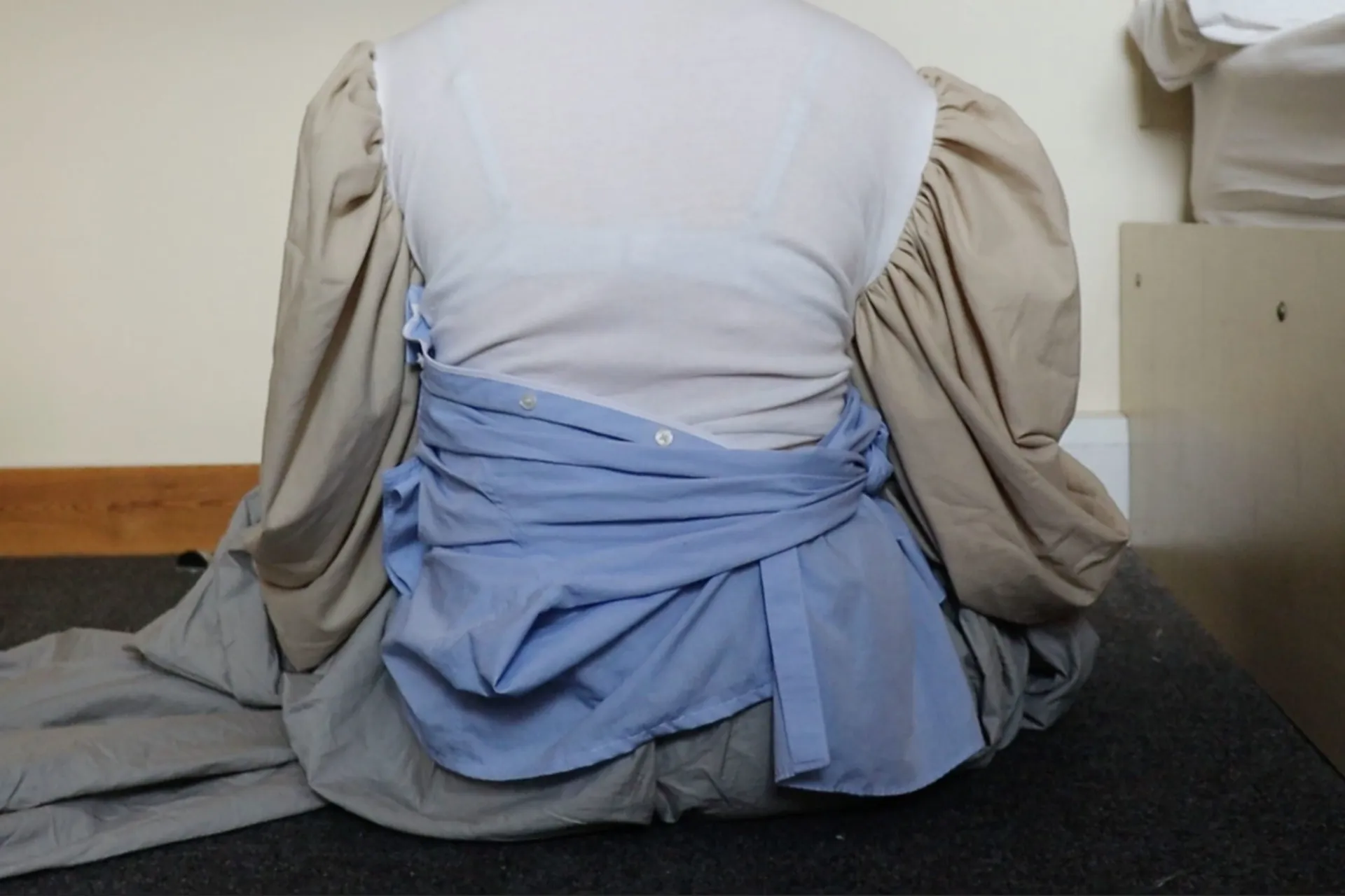 For my final piece I have created a costume for the character of Ma from the book ‘Room’ by Emma Donoghue. My project explores distorted realities and how one is able claim back their freedom through wearing accessible materials in a new way. I wanted my outcome to be as authentic as possible, therefore I created it from items that would have been accessible to both her and her son whilst they were trapped e.g. Fitted bedsheets, socks, an old t-shirt and shirt. The process of transforming her clothes allows the character of Ma to have a new identity. It allows her to pass the time, gives her a sense of escapism and time to get out of her head. My piece explores power in relation to other themes such as escapism, distorted reality, empowerment, confinement, and freedom.
