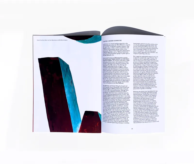 Finding inspiration from history and my background to reinterpret modern design principles is the basis of my practice as a graphic and type designer. Therefore, my dissertation publication, “how is signwriting present in urban environments in the 21st century West Midlands?”, takes inspiration from the history of my hometown in the West Midlands.