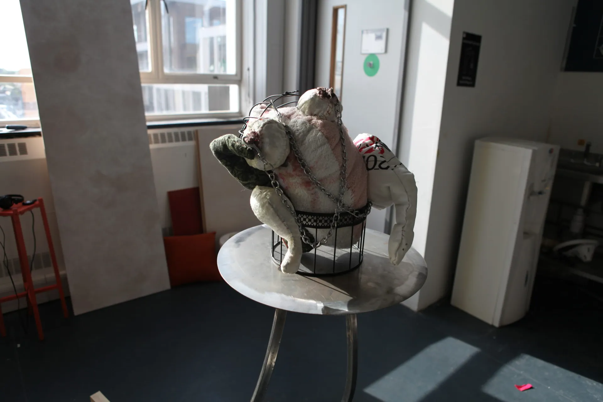 This art work is about women’s freedom. This topic was what I wanted to do someday. A few years ago, my favorite celebrity, “Sulli,” chose suicide. The reason was that she did not wear a bra often, so she was criticized and suffered from malicious comments for a long time. For this reason, it was heartbreaking to see someone I liked die. The most memorable thing she said was, “I think the bra is like an accessory. You can take it off and wear it depending on your mood or fashion.” So within this work I represent the desire of a woman who is no longer condemned for this reason as this work. Bird cage means the suppression of the form of women in society. The chicken showed a confident woman who did not give up and tried to get out of the cage without giving up.