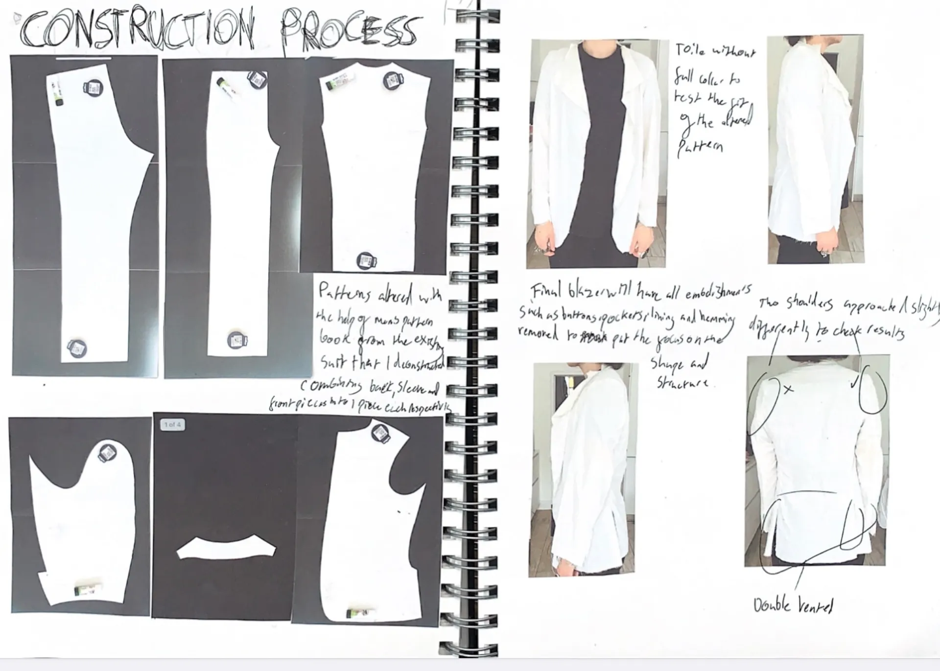 I still hate suits. I thought that ,maybe, my hatred would have subsided or possibly even turned into love for this particular area of fashion; but no. For me, the most important function of fashion is honesty, for the clothes to be a genuine representation of the wear and in a suit this is impossible. In its 300 ish year history it has become laden with association and connotation. So often it is used to hide something about the wearer, to present a false image of themselves to the world. My garment explores this dishonesty; it consists of 9 nearly transparent suits of increasing size layered one after the other until the become completely opaque but in hiding themselves under all of these suits they have become consumed, entombed and restricted to the point where they can no longer go out into the world in the way that they wanted to.