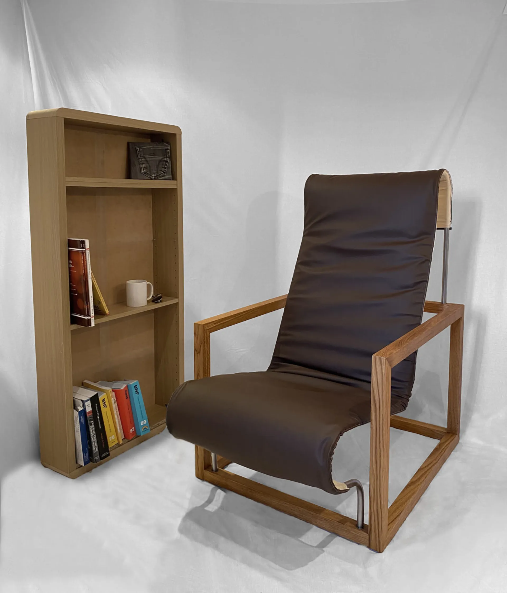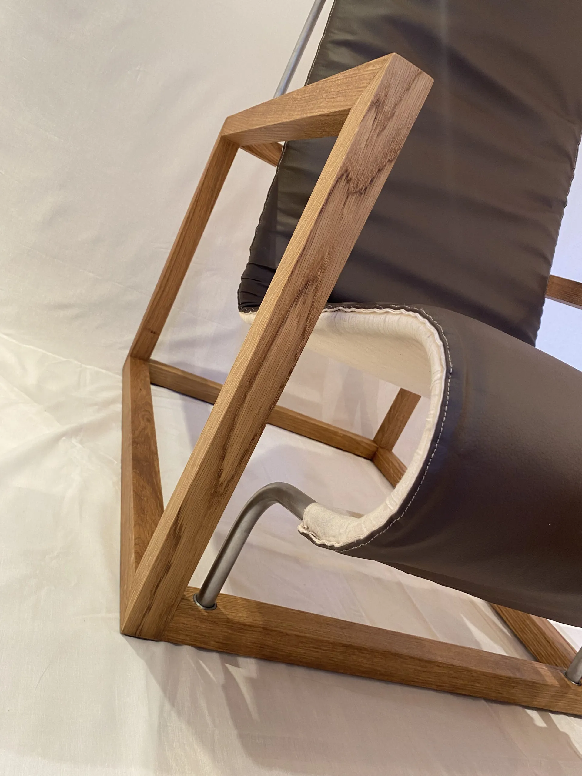 A desire to create a beautiful object, a comfortable chair, well made, chic, decorative and with interesting details. A minimalist structure with geometric forms is my inspiration. I have started by drawing some profiles to find the geometric aspect. The contrast between the square wooden box and the curved shape of the seat.