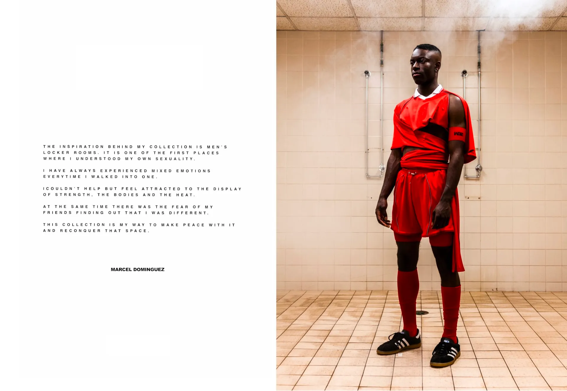 The inspiration behind my collection is men’s locker rooms. it is one of the first places where I understood my own sexuality.