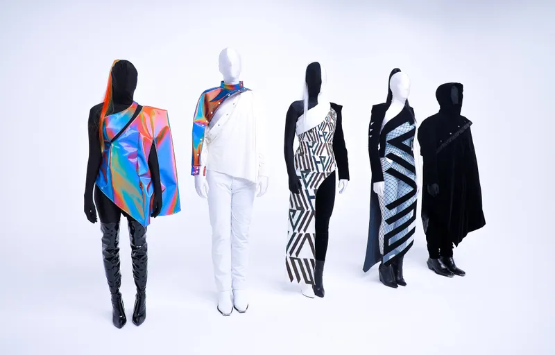 My collection is a deep and vulnerable insight, into how the world is perceived through my own eyes, and the eyes of other synesthetes, who live with the neurological phenomenon known as Synesthesia. “Synth” (which means “together”) and “Ethesia” (which means “perception”), is the stimulation of one sensory cognitive pathway, leading to automatic, involuntary experiences in a second sensory cognitive pathway. In my experience, letters, numbers, words, and shapes shift colours in different scenarios, or fonts, but mostly stay the same. As I am also Dyslexic, I see letters and words in different sizes, reflections and swapped positions. This uncontrolled stimulation of the brain can cause sensory overloads. For myself, these circumstances are calmed by bathing in ultraviolet light, stripping all colour from the visible spectrum within the surrounding environment. The 5 outfits of this capsule collection are each paired with the 5 senses that are affected by my condition, and partnered with 5 letters that make up my surname / brand identity. I perceive these letters to have 5 separate colours, smells, and tastes, manifested in this promotional package, representing stages of under to over stimulation, all of which are involuntarily impacted by shape, colour, and environment. Please submerse yourself in this collection that represents the physical embodiment of how I view the world. Explore the smells, tastes, textures, and colours, in this environment, and interact with them using all 5 of your senses, to expose the reactants, effects, and products, of multi-sensory interaction.