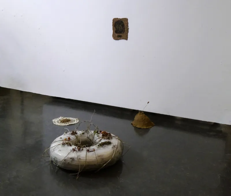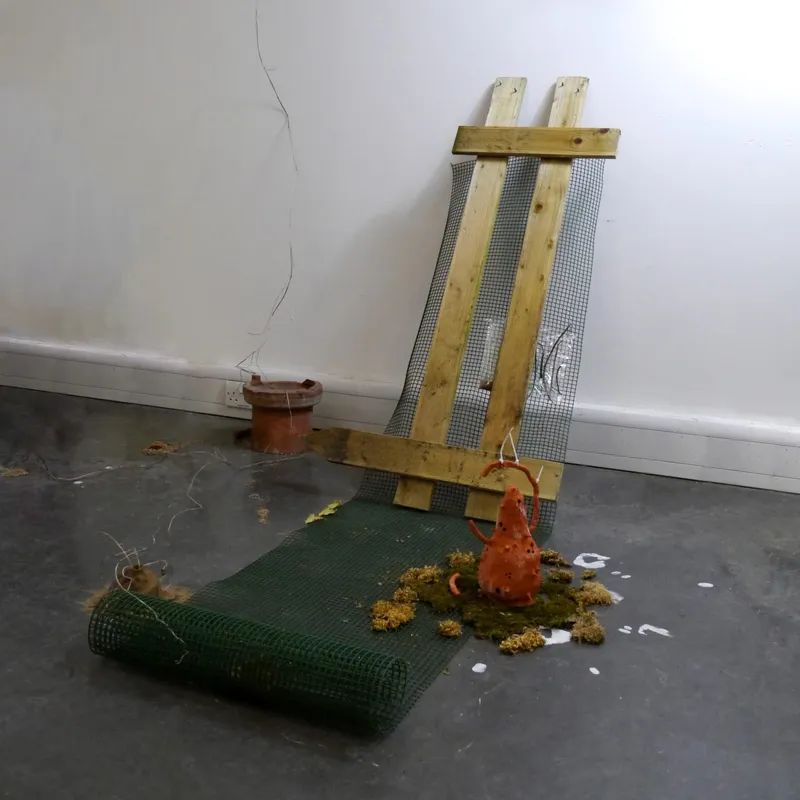 Work investigates the extraction and displacement of waste and organic material through urbanisation, and processes of post-industrialisation. Using discarded material found in skips, on roadsides, building sites and neglected areas of shrubland she constructs sculptural arrangements that become indexes of memory, experience and identity.