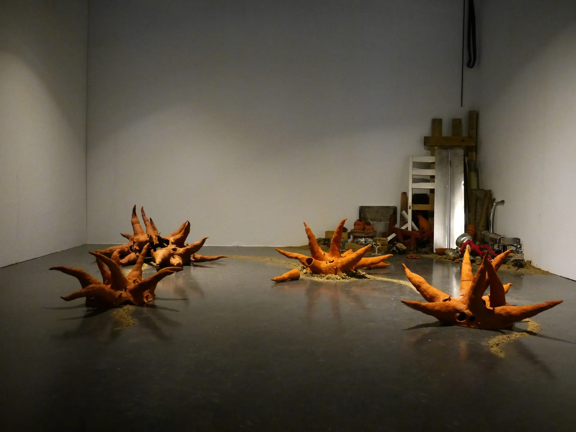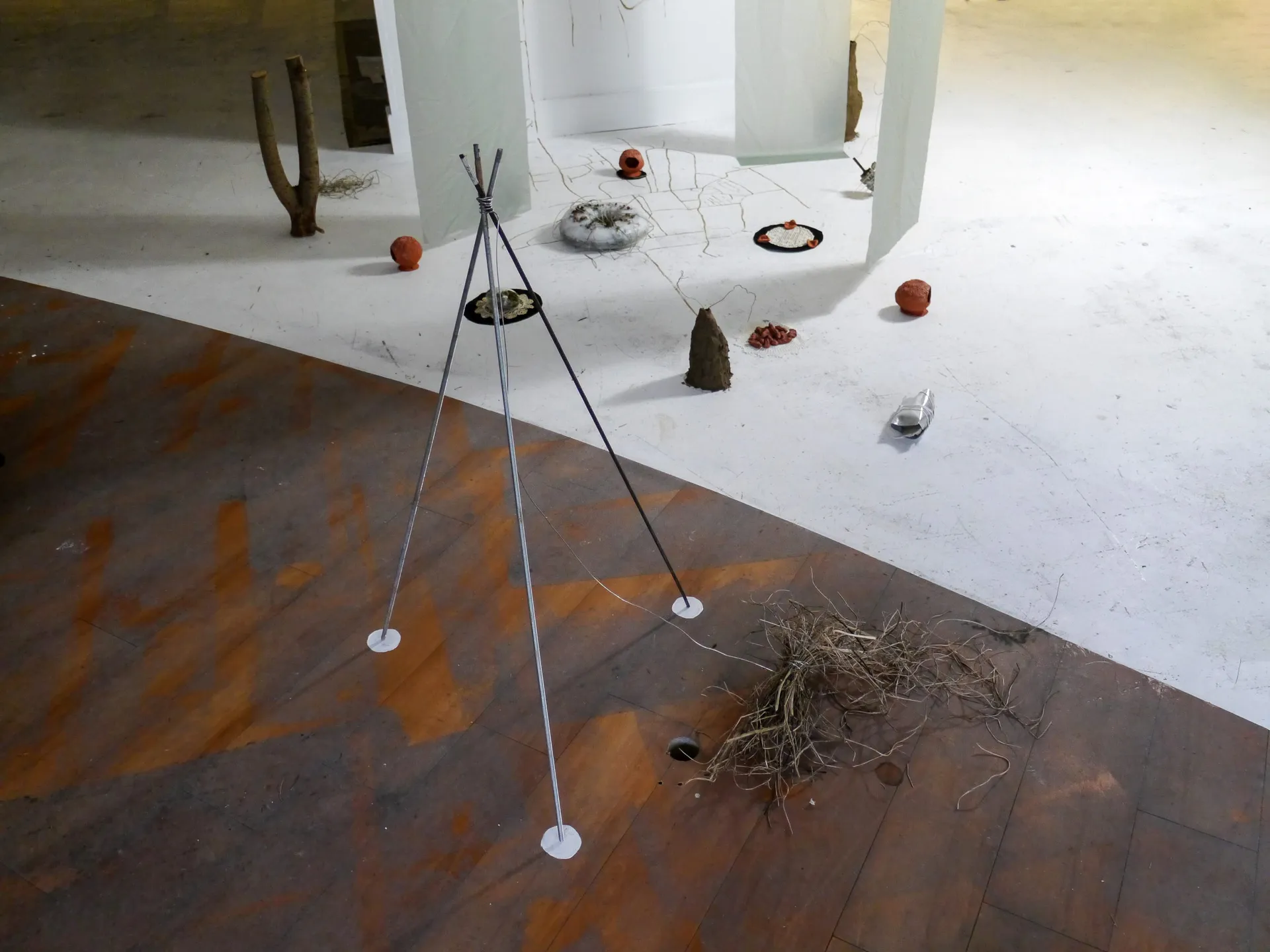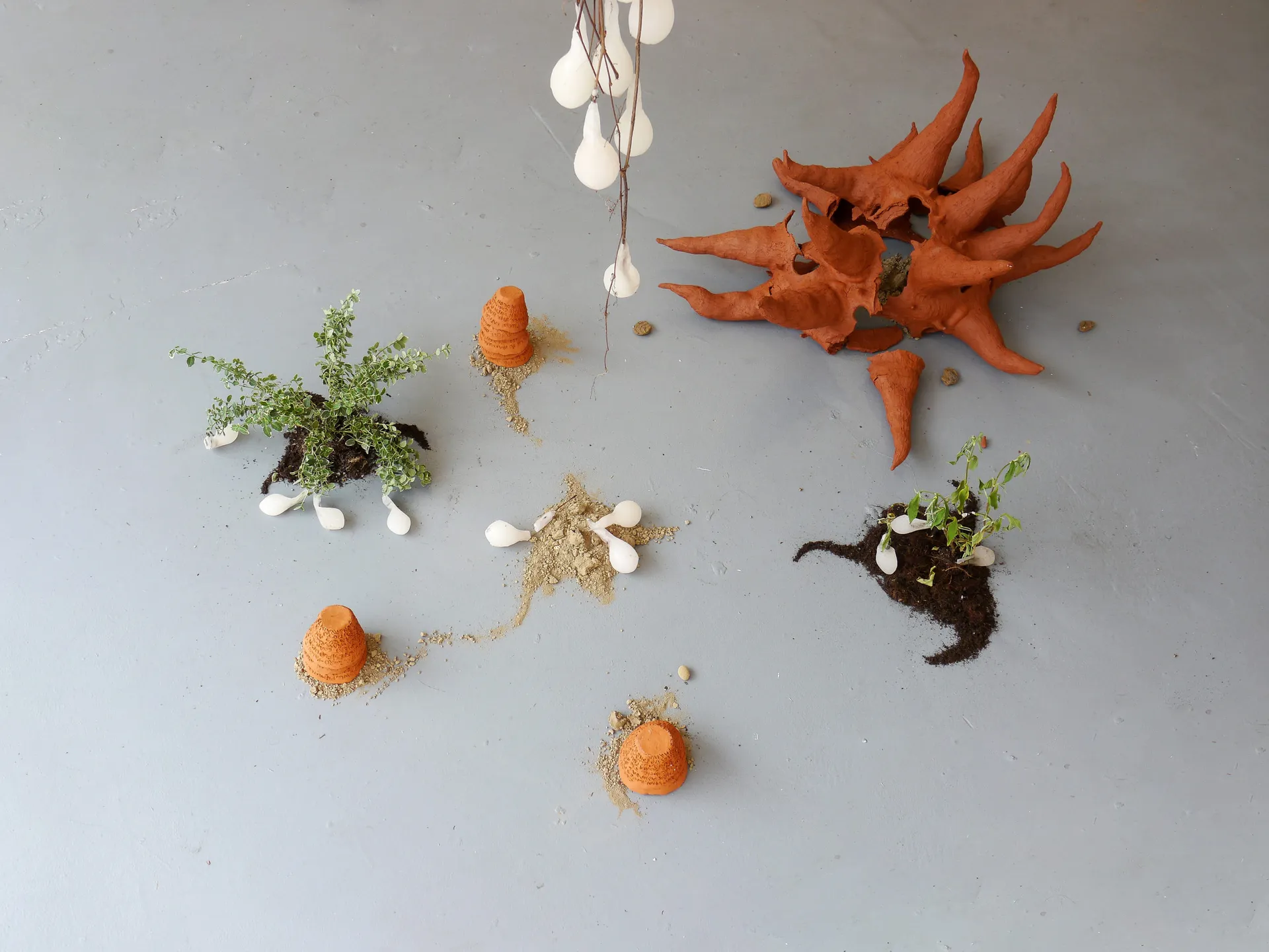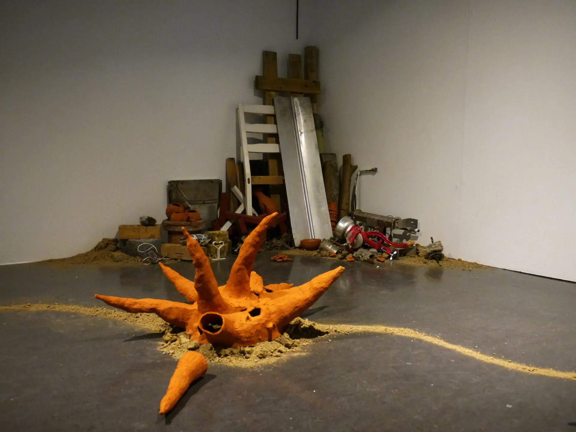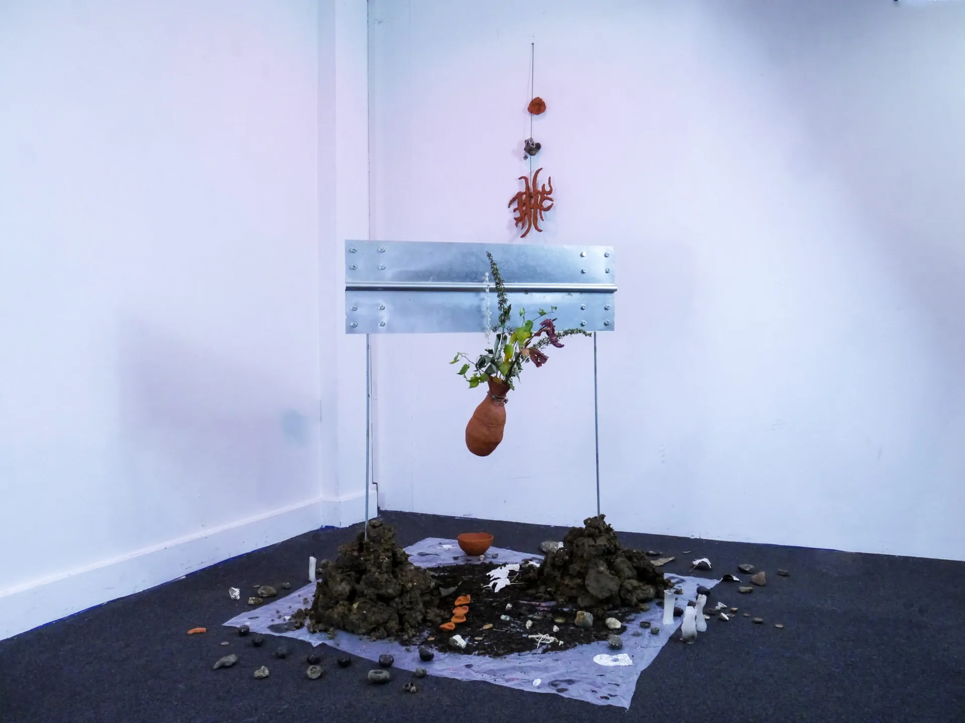 Work investigates the extraction and displacement of waste and organic material through urbanisation, and processes of post-industrialisation. Using discarded material found in skips, on roadsides, building sites and neglected areas of shrubland she constructs sculptural arrangements that become indexes of memory, experience and identity.