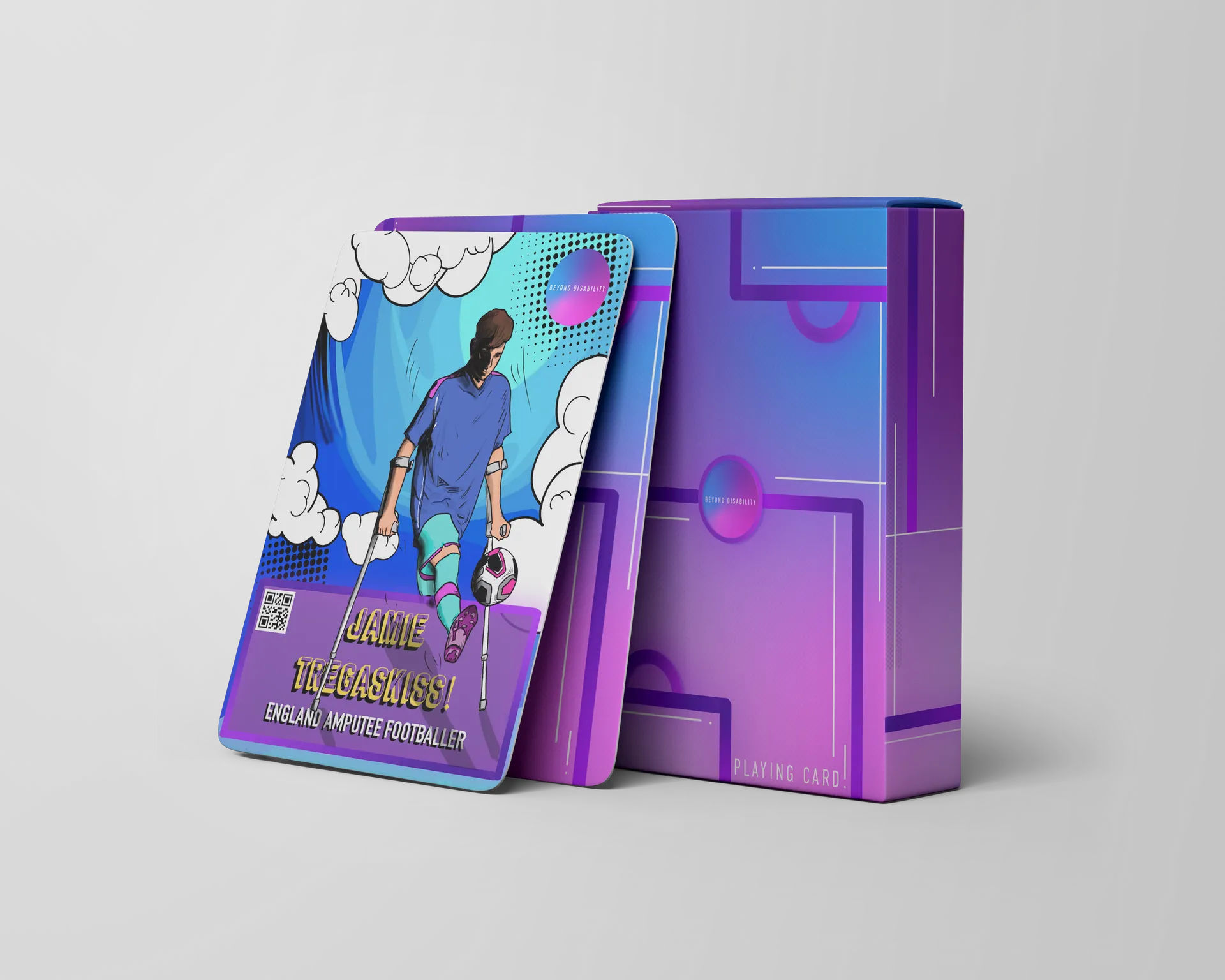 A campaign that brings awareness to disability football. “Beyond Disability ” is the aim for this campaign. We believe that “attitude is everything”. Disability football players can be just as good or even better at football. We want to use gamification to raise awareness. The concept is that we have created playing cards with disability football players. The audience can unlock the card through our website. Also they could join the VR experience of playing football as the player in the card later on in different events. Also different kinds of social media and OOH marketing will support this campaign.
