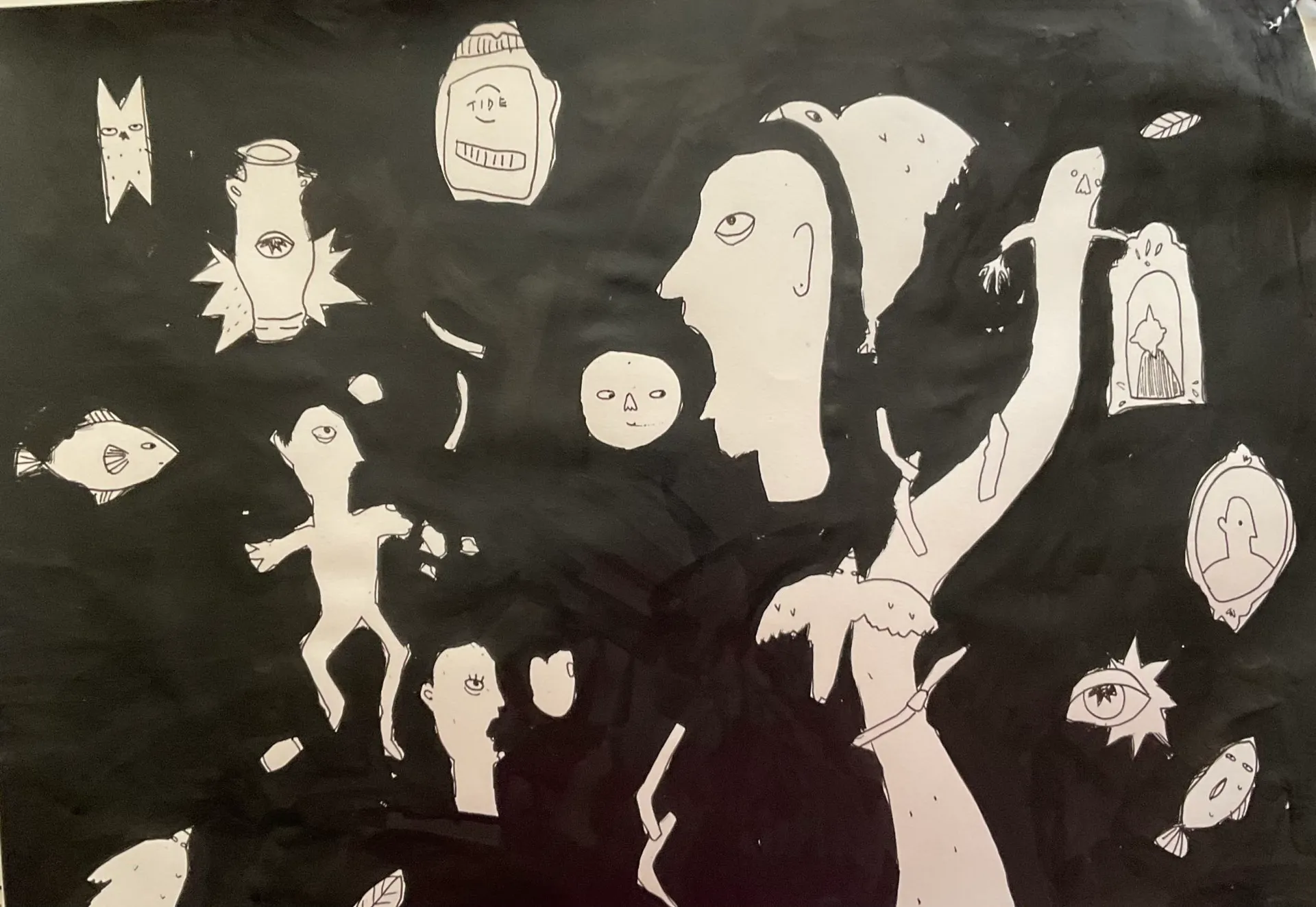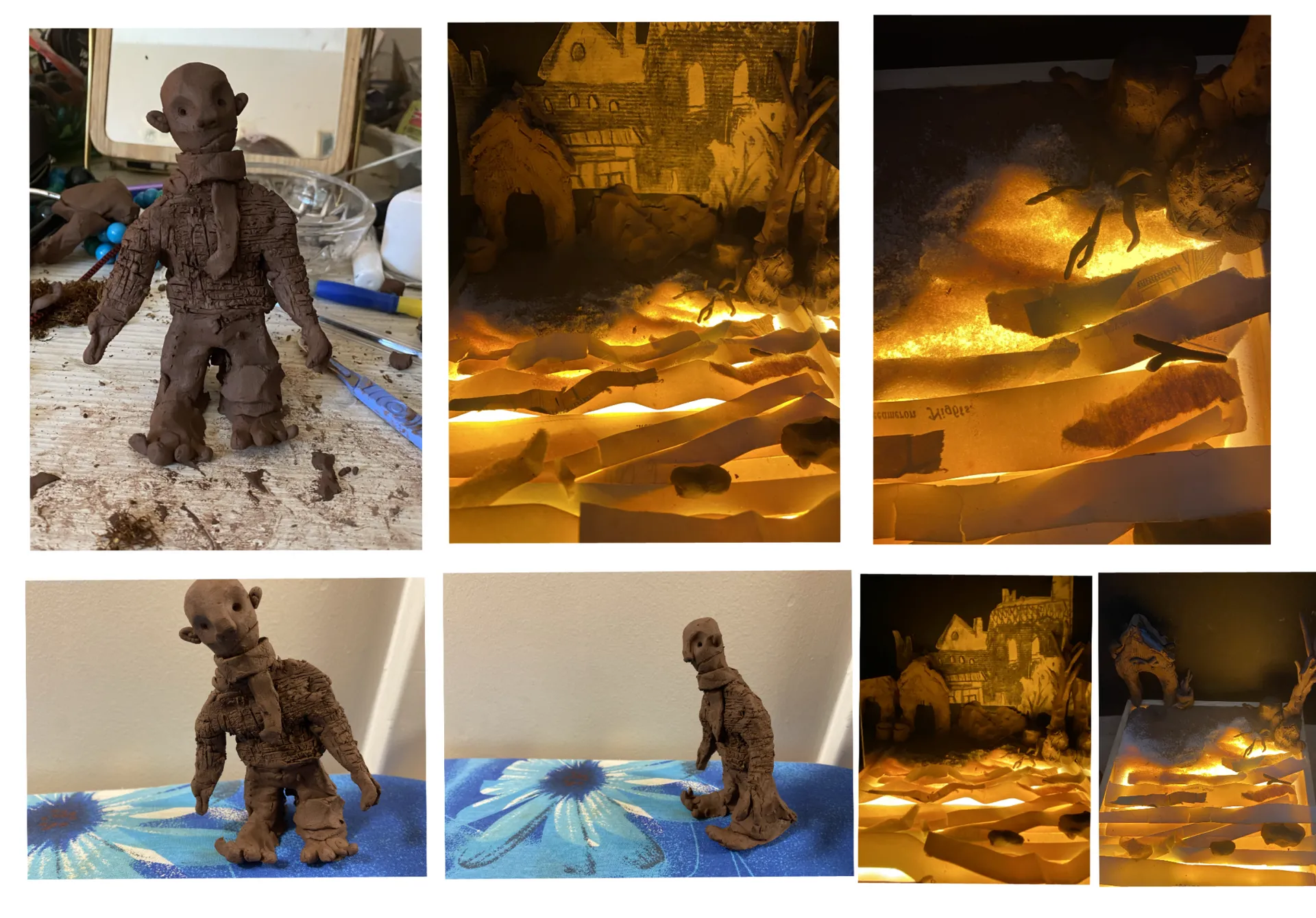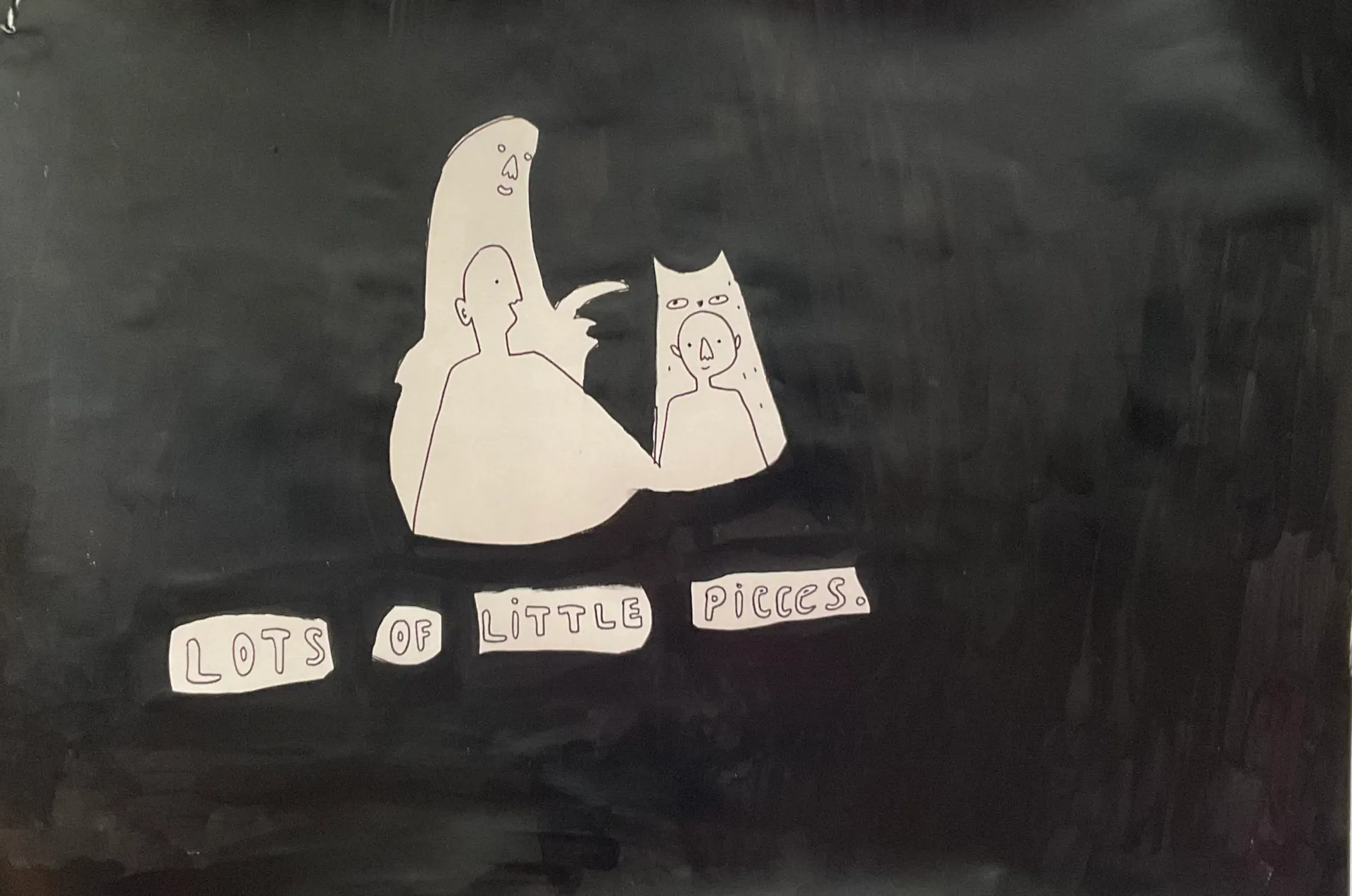 My piece is an animation embodying mine and others experiences with dementia as an outsider and how can we capture something that isn’t describable and is still very much a mystery. Though the animation I wanted to show a change in a relationship while having an ominous feeling and hopefully being charming, i tried to juxtapose the dark subject matter with more lose and simple drawings. I titled my piece missing pieces and my project lots of little pieces. I also wanted to portray chaos through a series of images that map out a poem showing miscommunication and trying to disorient the viewer.