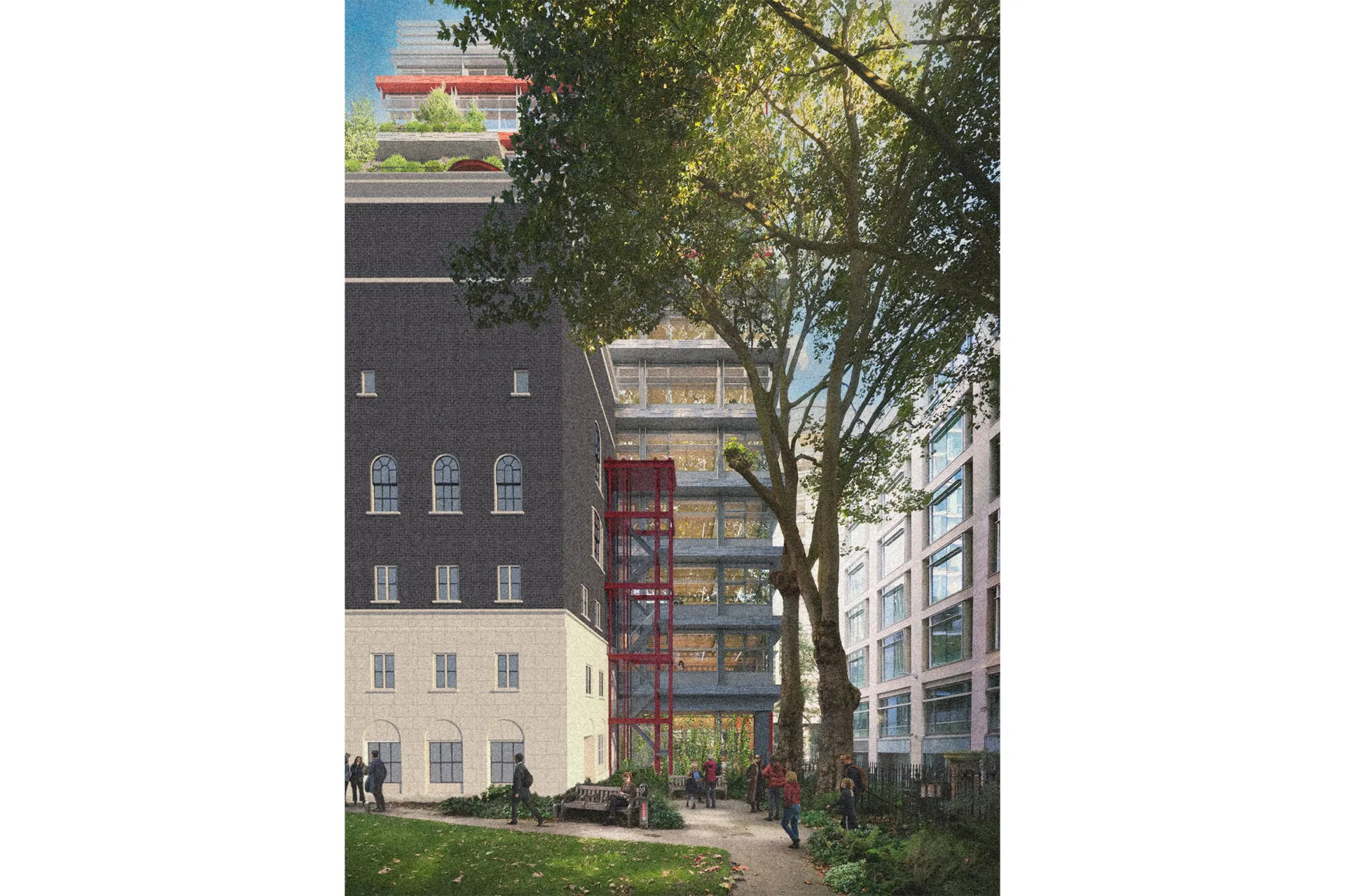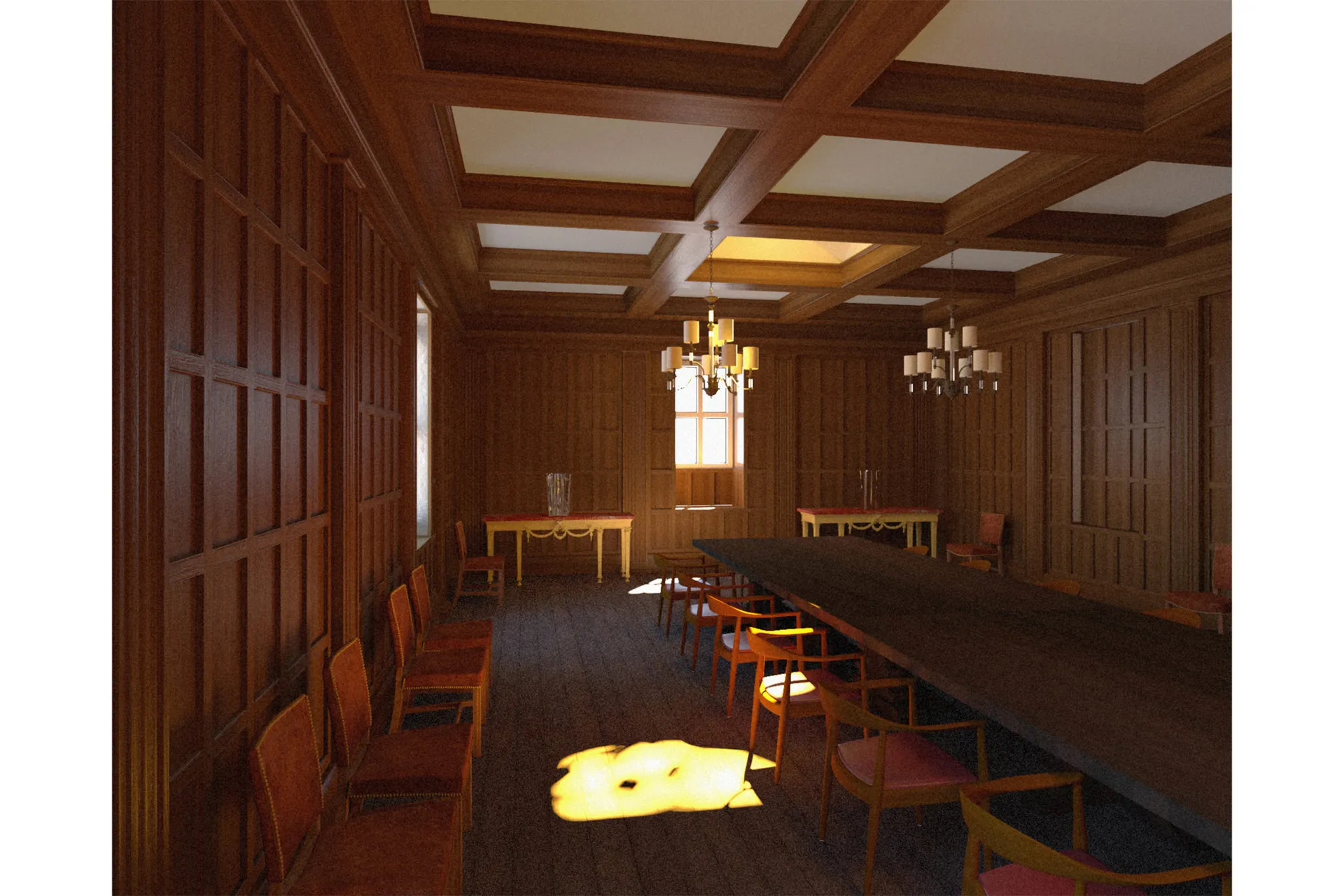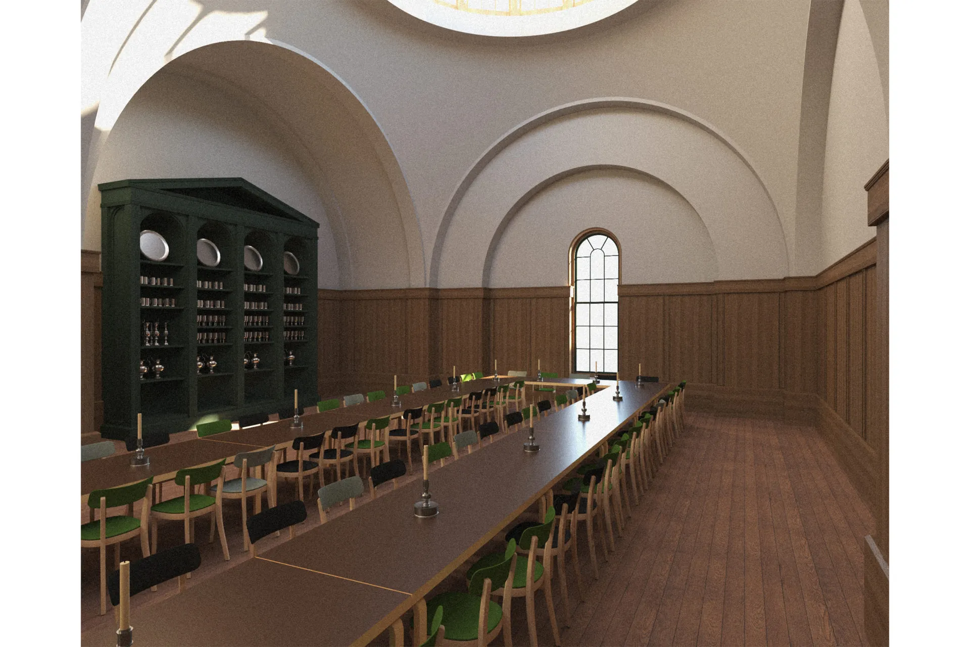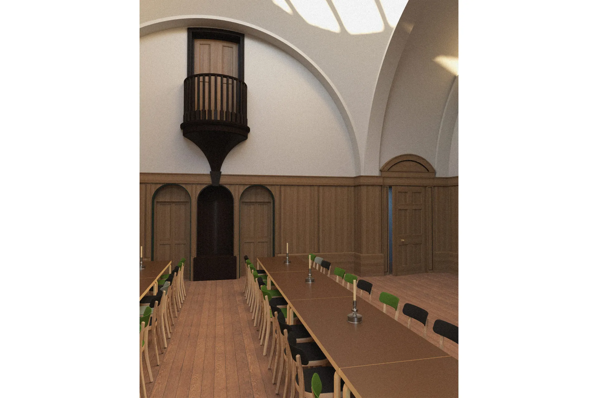 A new home for the Worshipful Company of Chartered Architects in the City of London. A black brick and Portland Stone Livery Hall which primarily explores the ideas of Sir John Soane. The building features a heavy use of arches, domes, rooflights and stained glass. The front elevation faces East towards the centre of the city with a moody entrance vestibule setting the tone for the rest of the building. Main spaces inside include a vaulted top lit Hall and heavily panelled Court Room on the third accessed via a grand staircase inspired by the roman mechanics of Italy’s aqueducts.