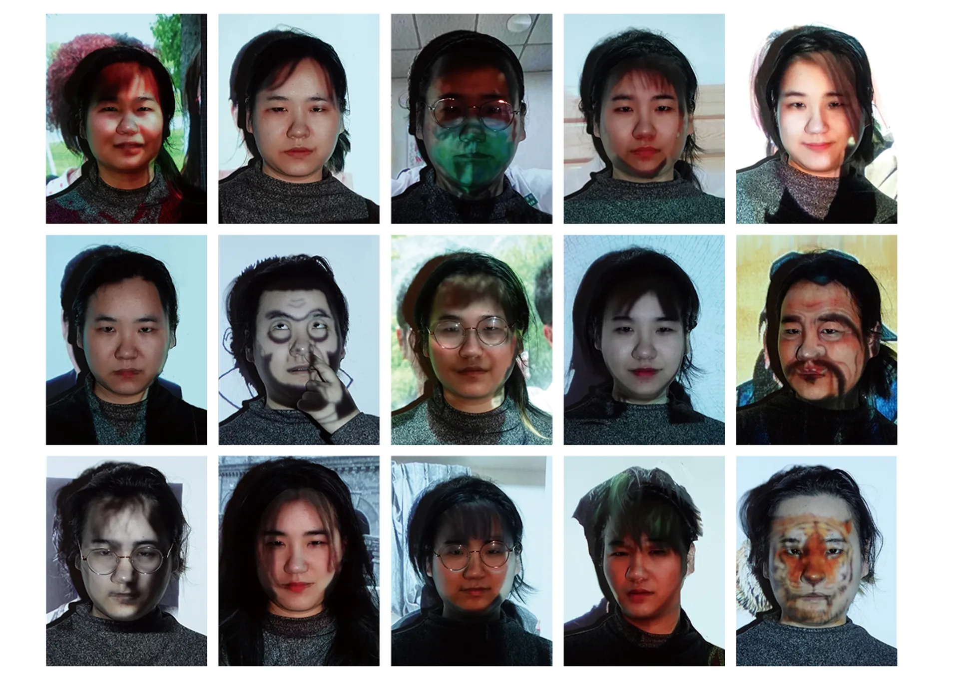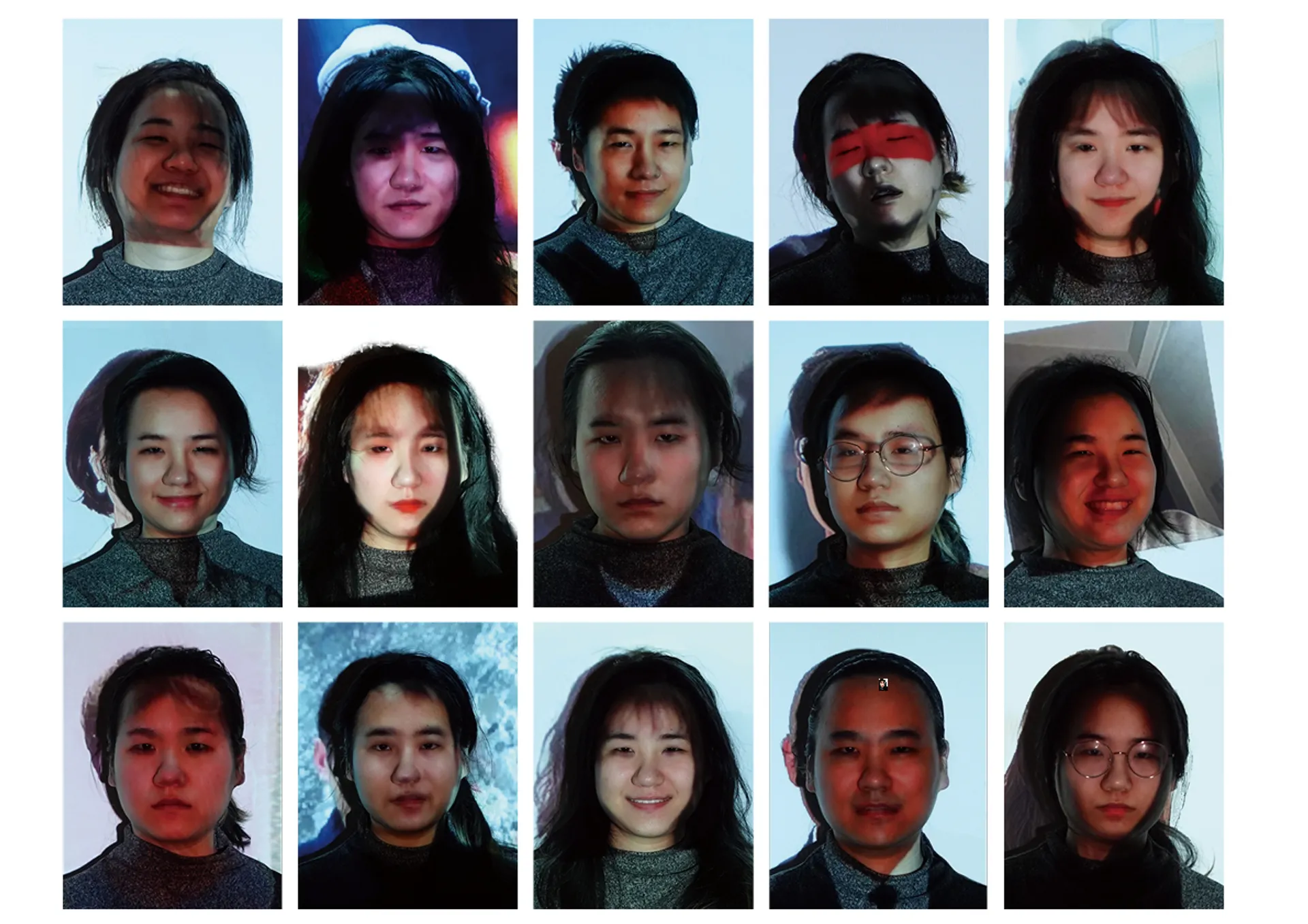 在这个项目中,我利用投影仪把别人的形象投影到我的脸上,得到了这些虚假的肖像。别人的形象来自于我成长过程中,对我产生了影响的人,比如我的父母,老师同学,我喜欢的明星作家等等。他们是并不存在的虚假的人物群像,当他们集合起来呈现时,也是我的自画像。