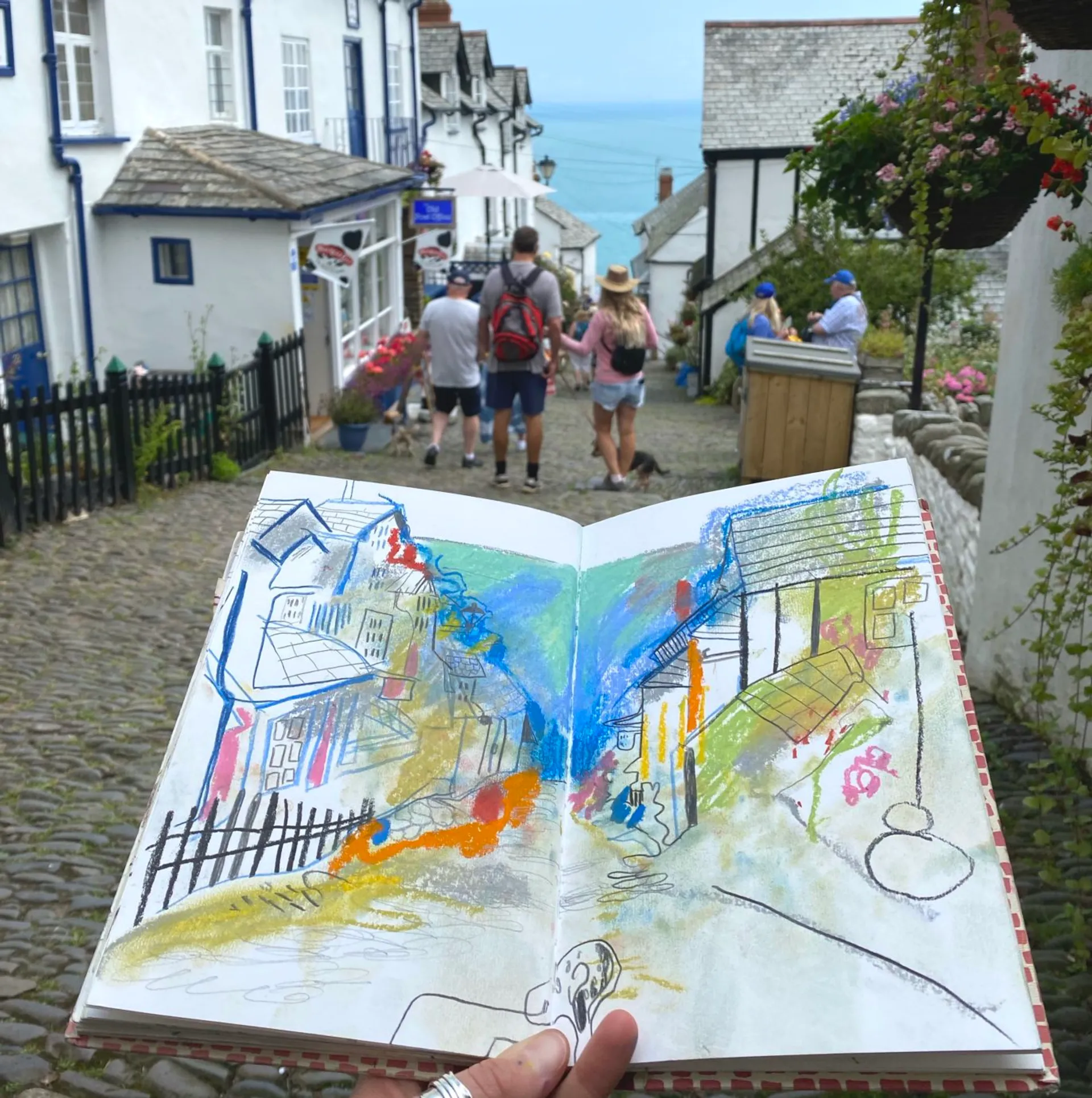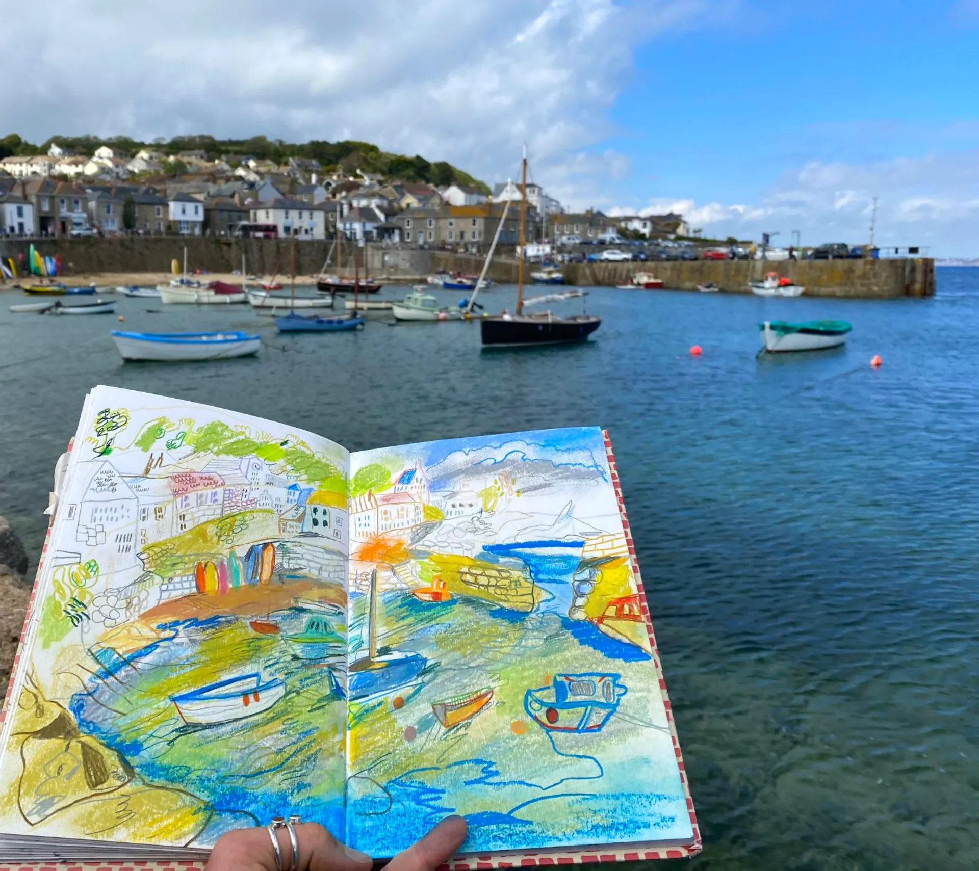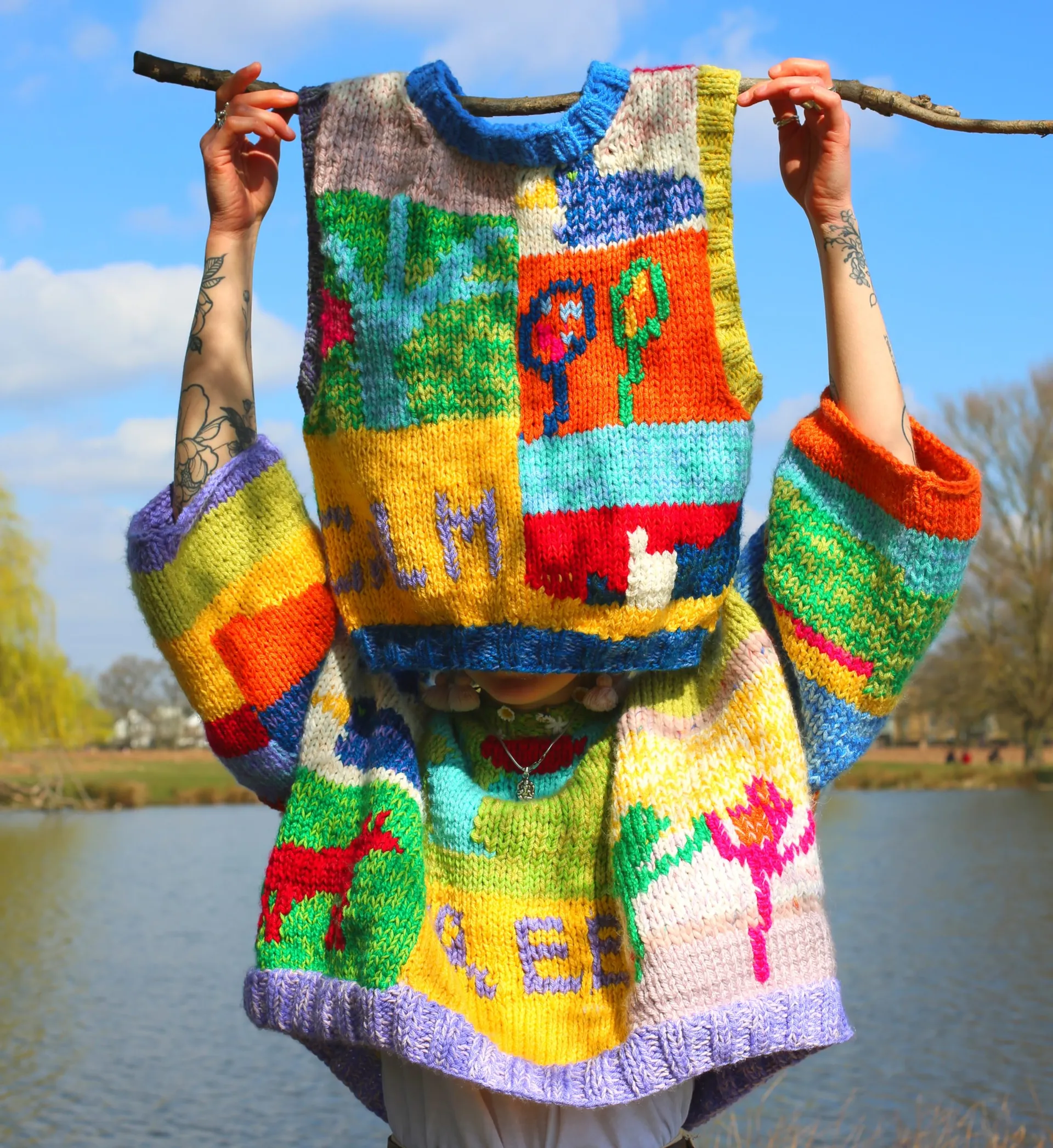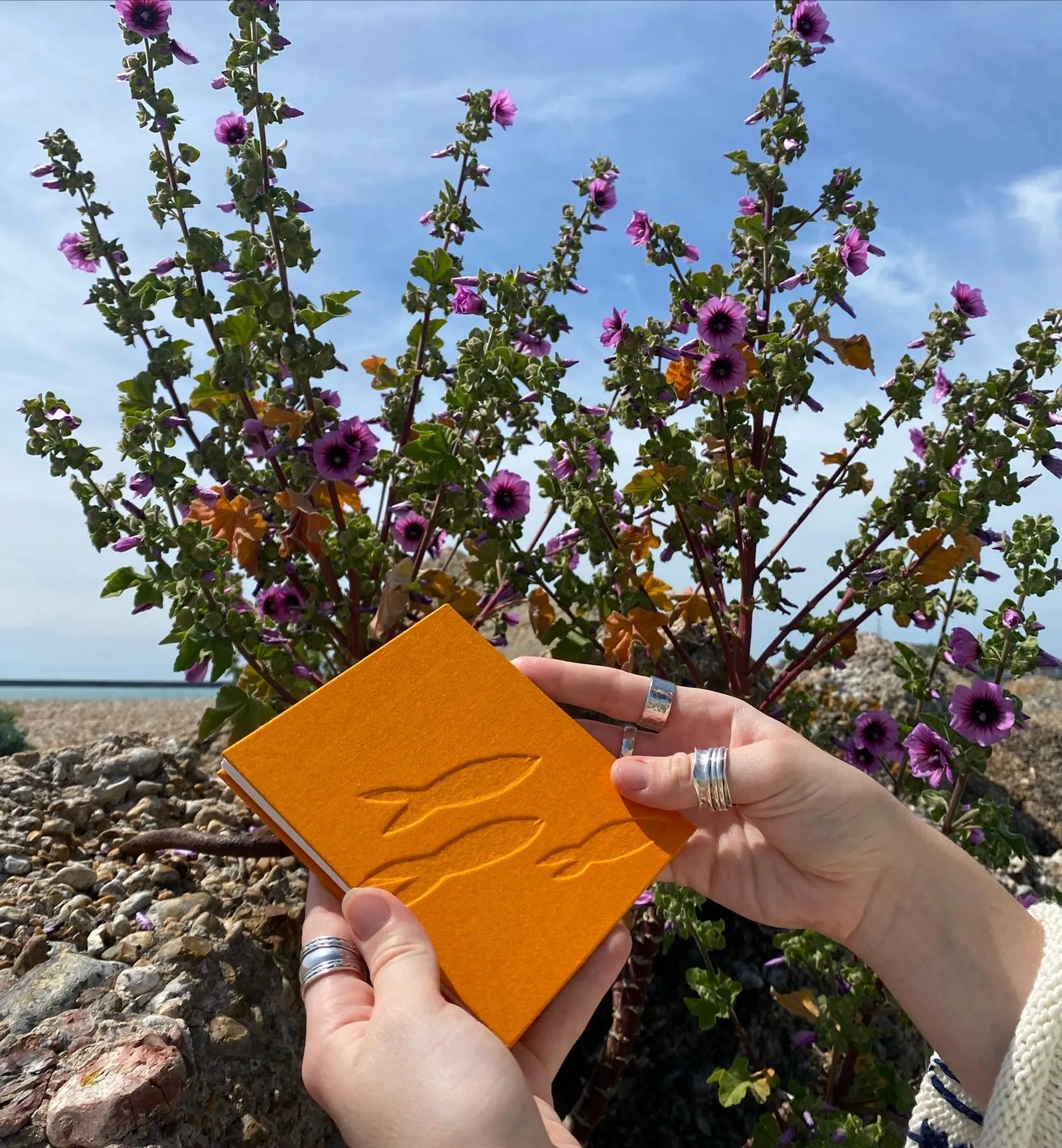 Noosha Moon’s work is dynamic, interactive, and colourful and inspired primarily by her playful daily reportage sketchbook in tandem with knitting from photographs. Aspects of nature suffuse her creative output, especially oceanic themes inspired by her childhood in St Ives, Cornwall.
