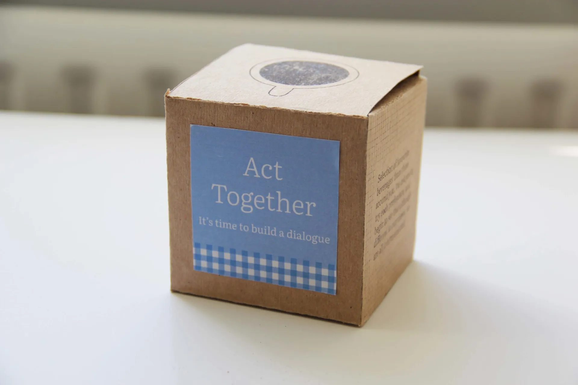 An audio extract discussing the building of relationships to reduce disagreements is presented through an engaging stop-motion style and the metaphor of the well known tea vs. coffee preference debate, in order to be comprehended by a broader adult audience. This is accompanied by a designed personal selection box of teas and coffees.