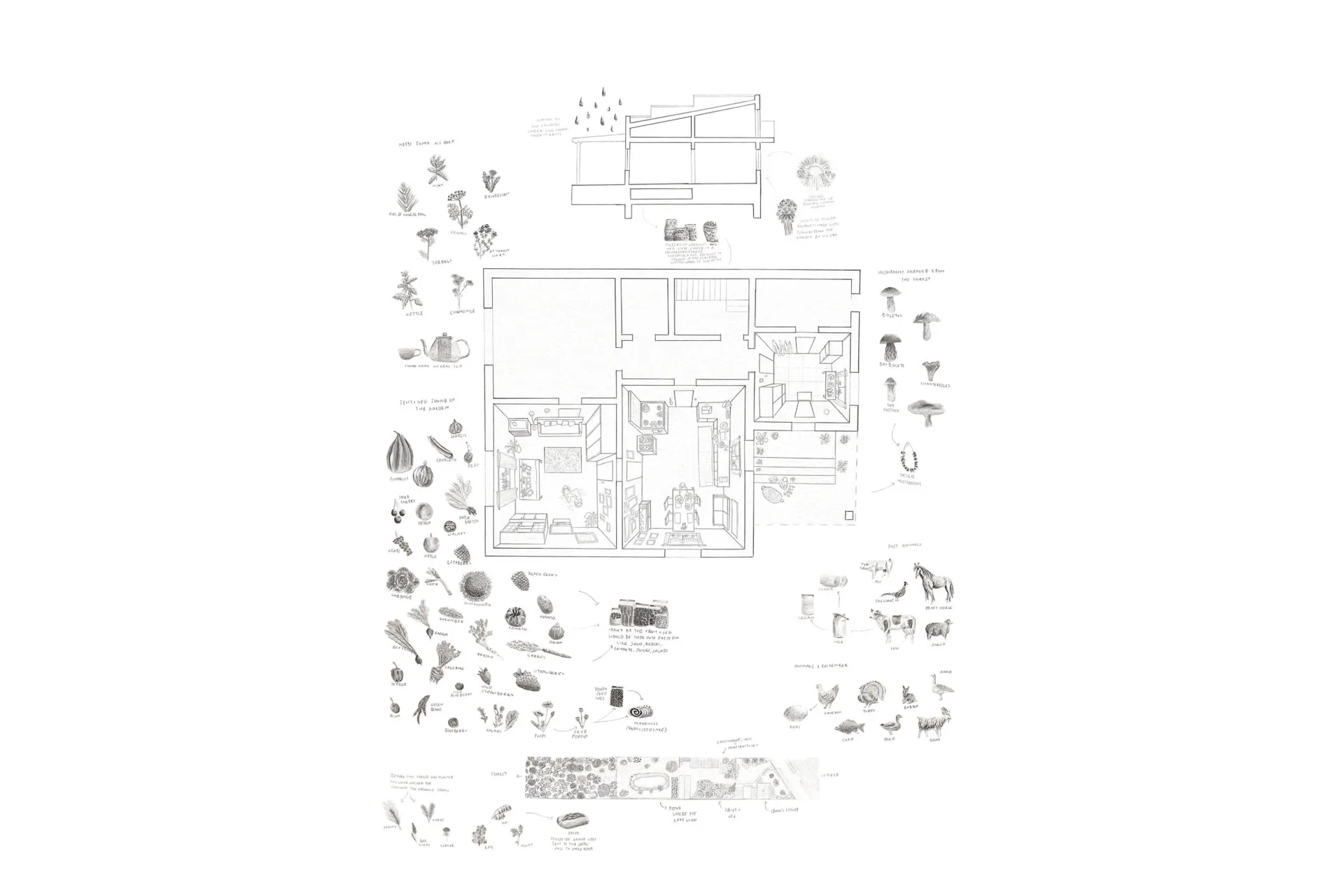 This project developed from the first two briefs of the year, material anthropology and gateway design. Material anthropology influenced the exploration of organic material starting at the preservation of mushrooms. The gateway design influenced the programme of education of food through foraging and harvesting.