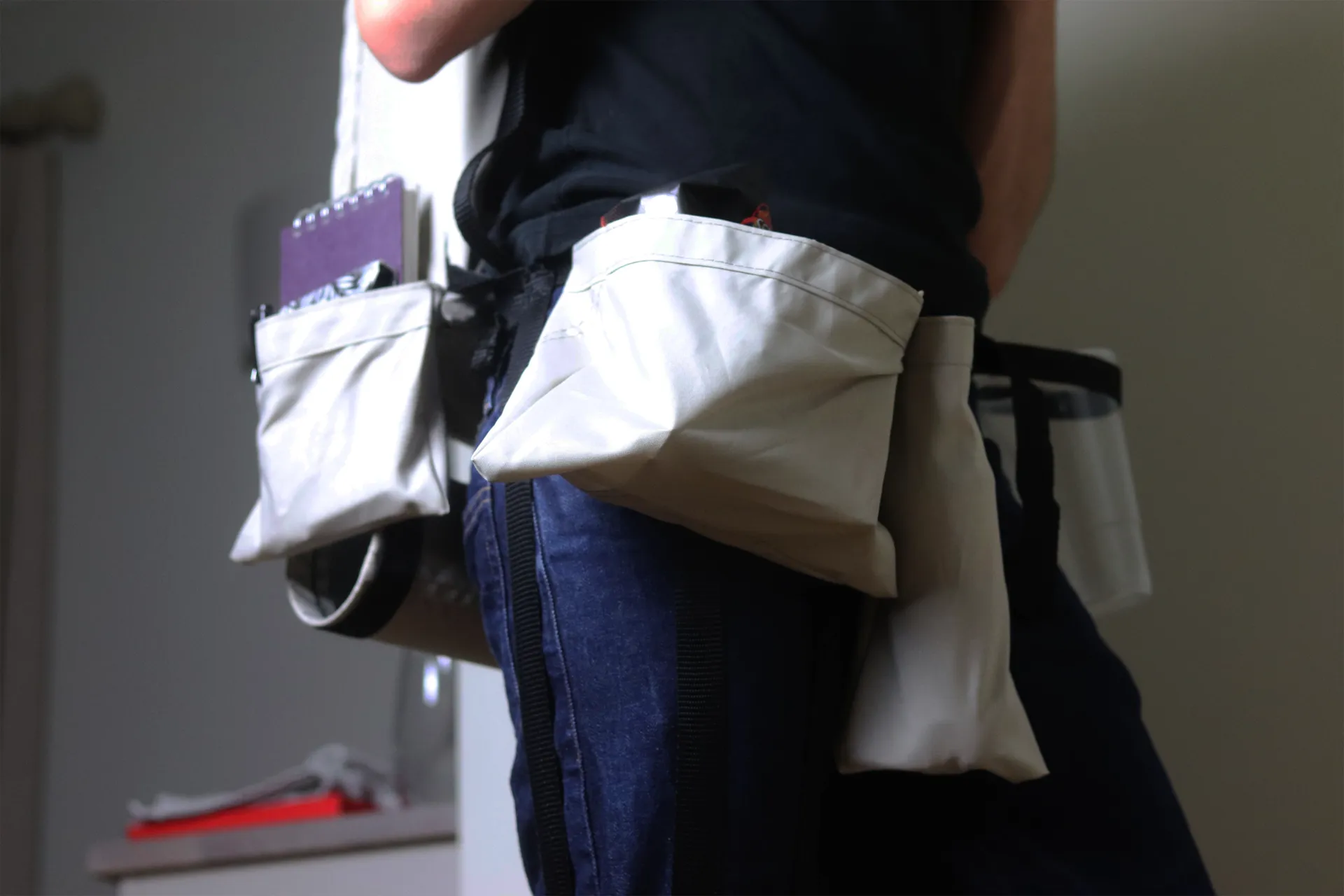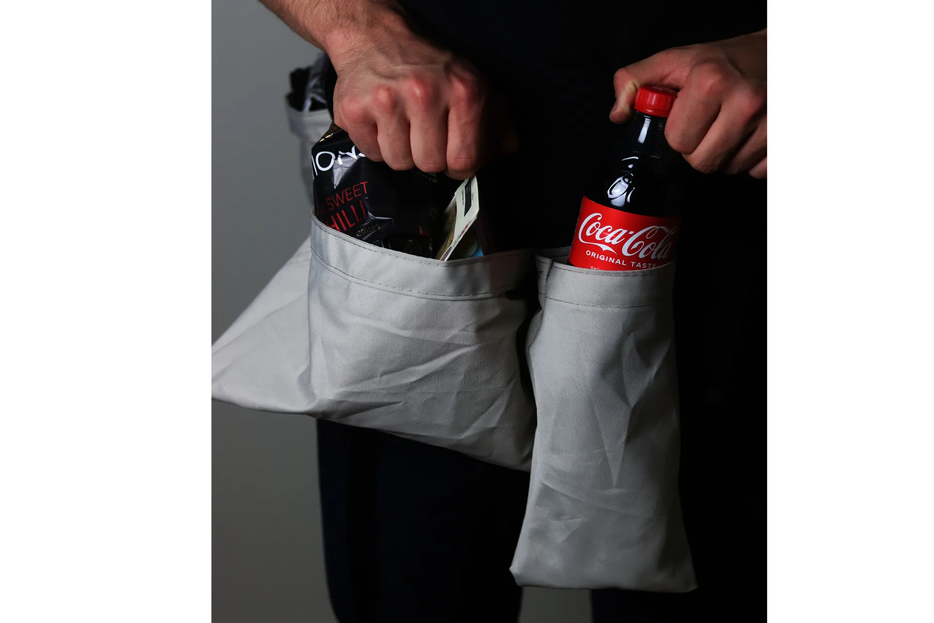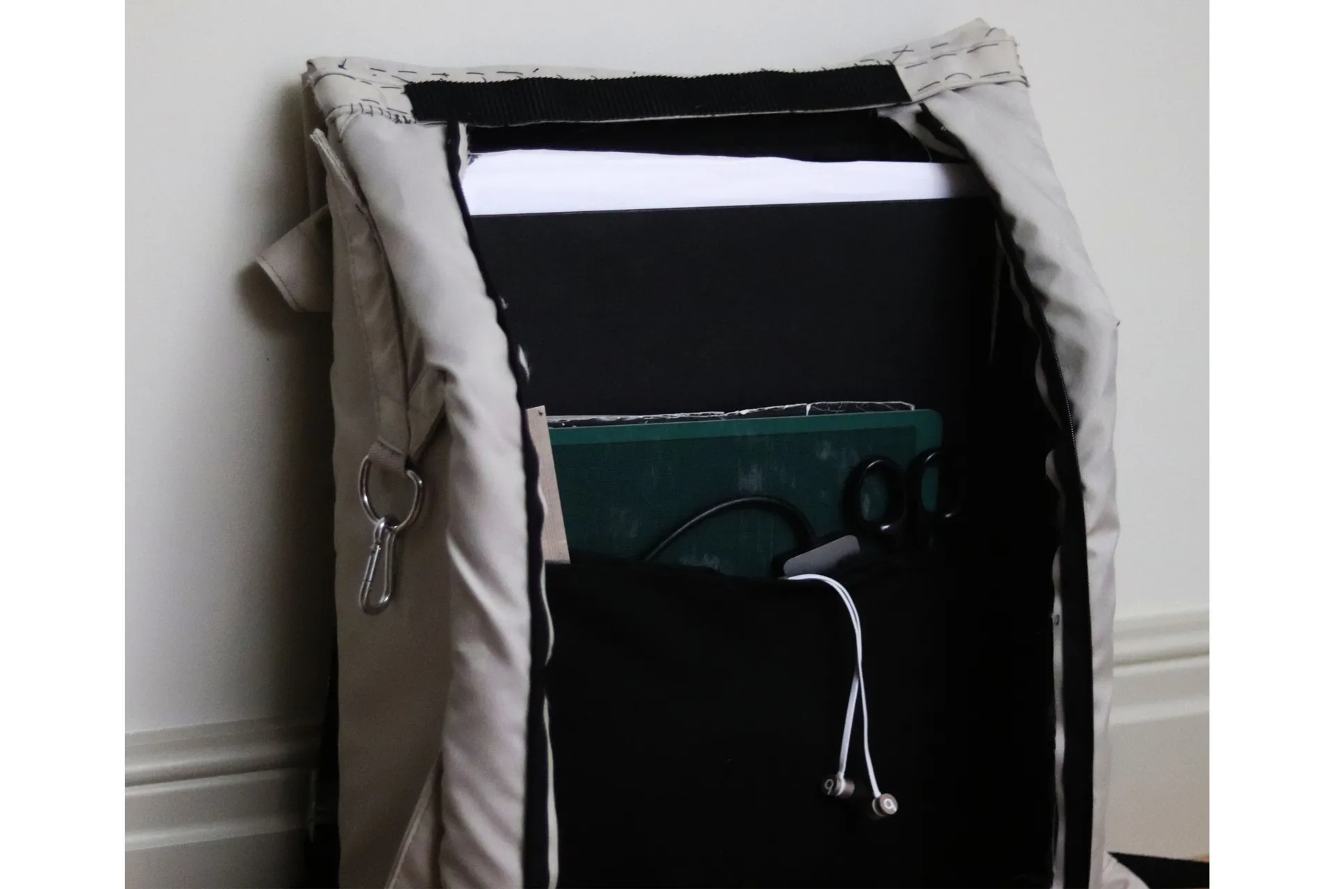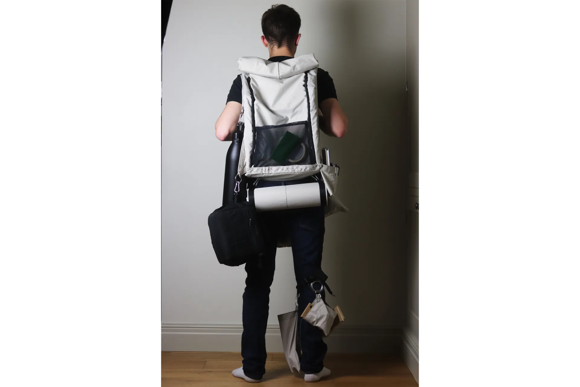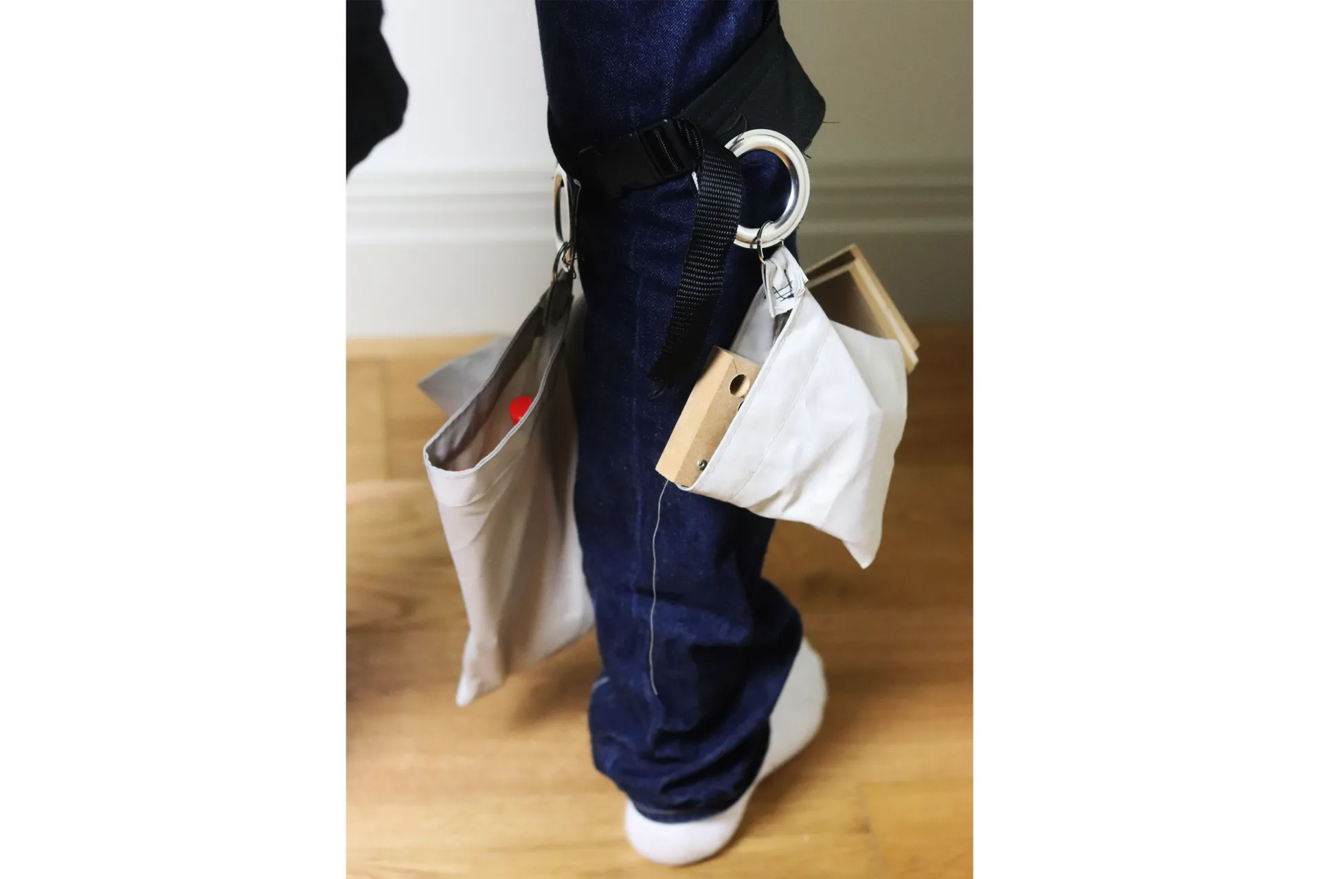 my work is based around essentials for a student at Kingston foundation. My final piece is tailored to my personal experience at Kingston and the garment contains all essentials I need to get through the foundation course. I wanted my work to have more of a playful direction. The whole idea is you wouldn’t need anything else to carry your belongings. If you had a bag containing materials or other items you could simply hook it on or put in a pocket and keep moving. I think one of the most important part of my work is the reaction from others who look at it (specifically Kingston students) because I want them to look at it and wonder what they would put in the garment or how they would design it differently around their experiences.