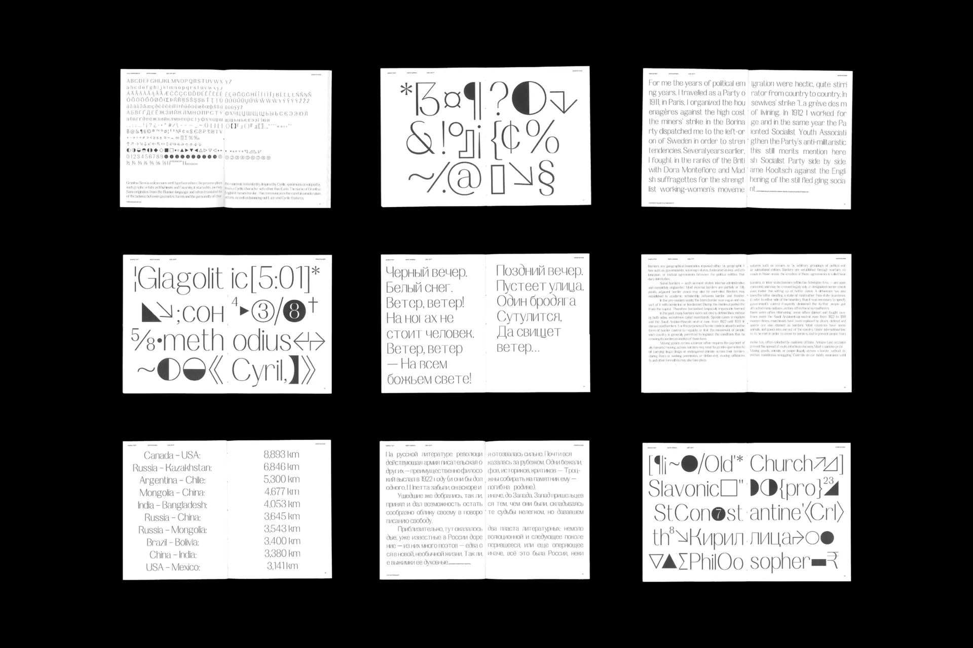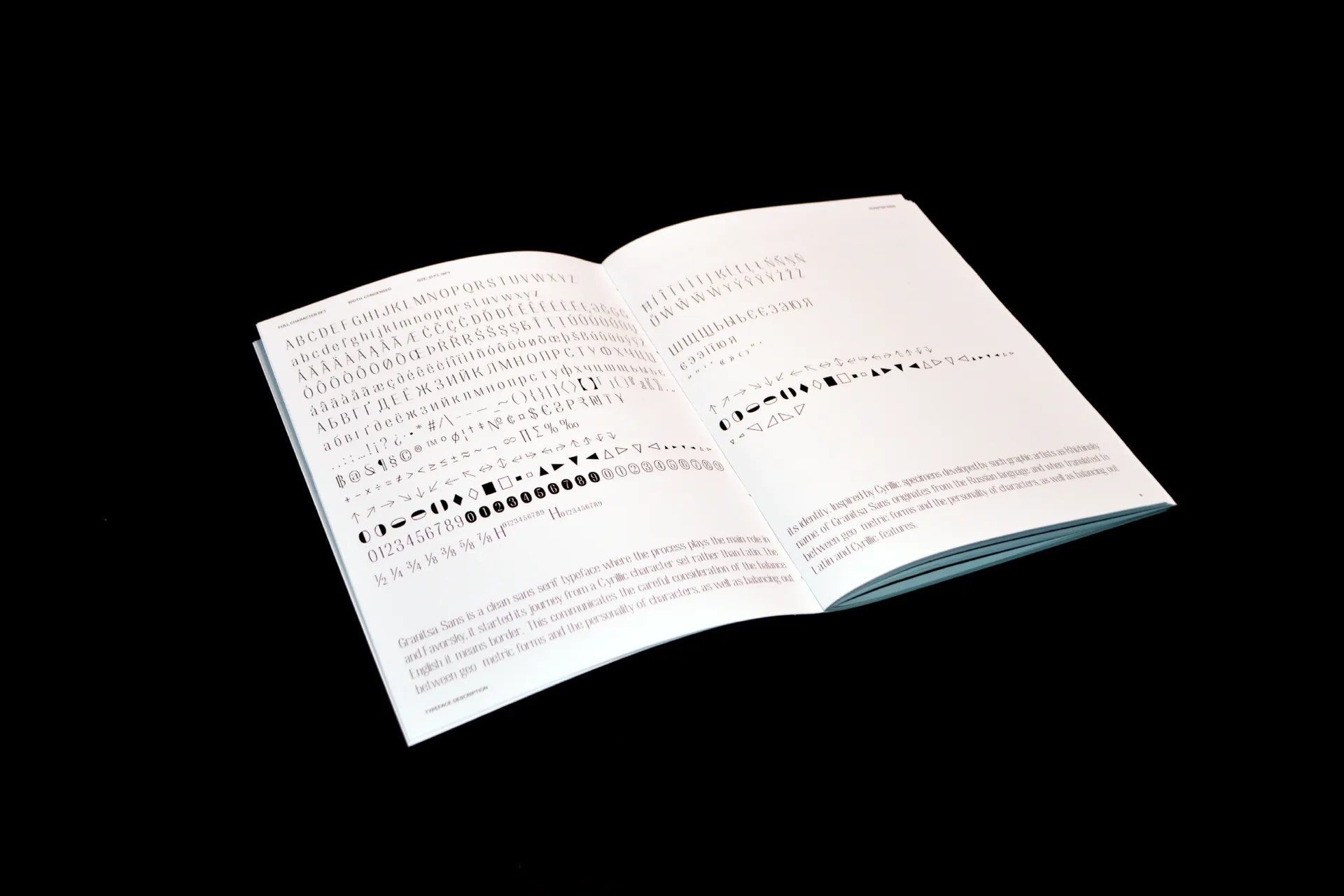 > Granitsa Sans is a typeface where the process plays the main role in its identity. It started its journey from the Cyrillic character set rather than Latin. Translating from Russian to English as border, it communicates how the design plays on the border of Latin and Cyrillic scripts, informing each other rather than existing separately. Designing this typeface was part of me getting more acceptive of my cultural identity as an international student and an immigrant.