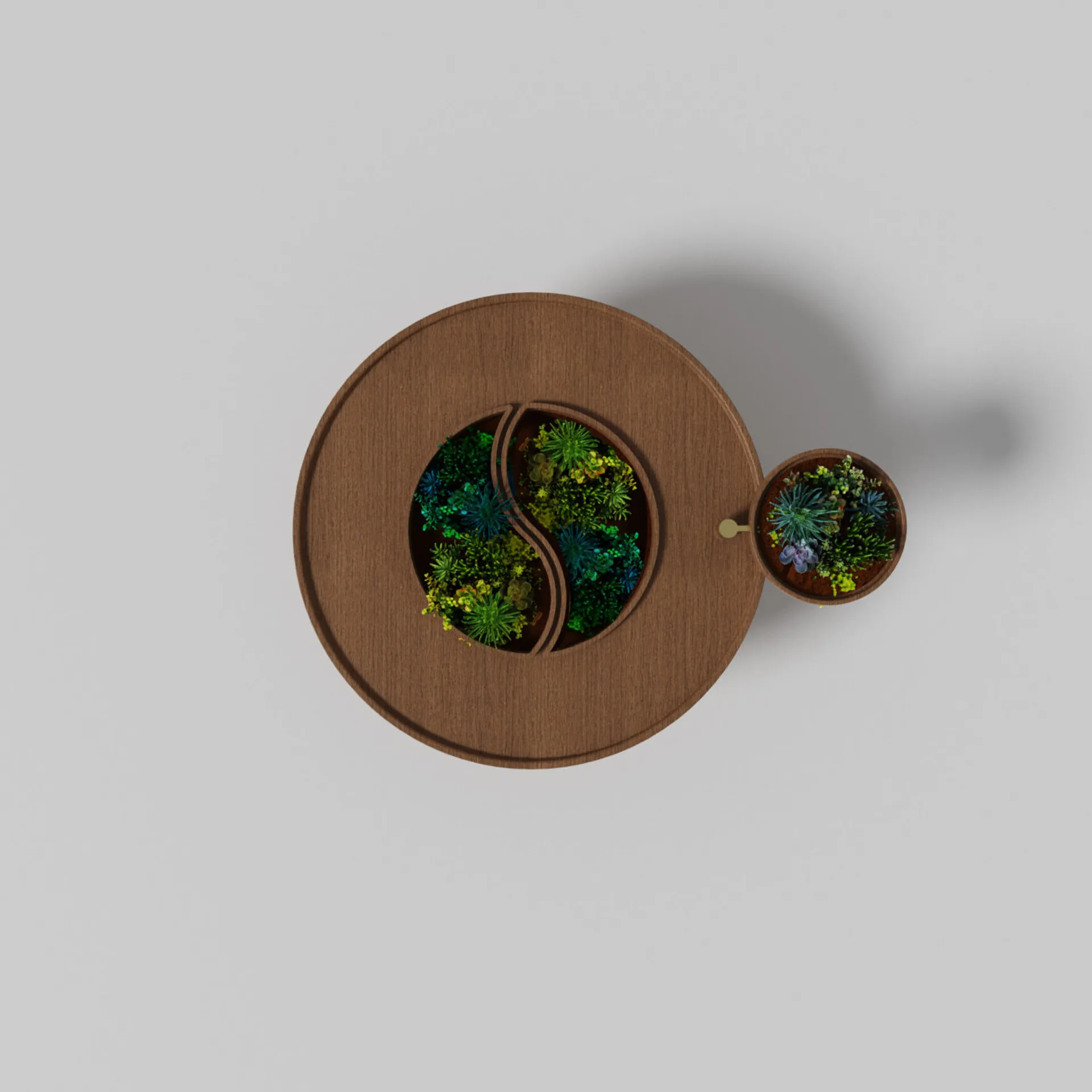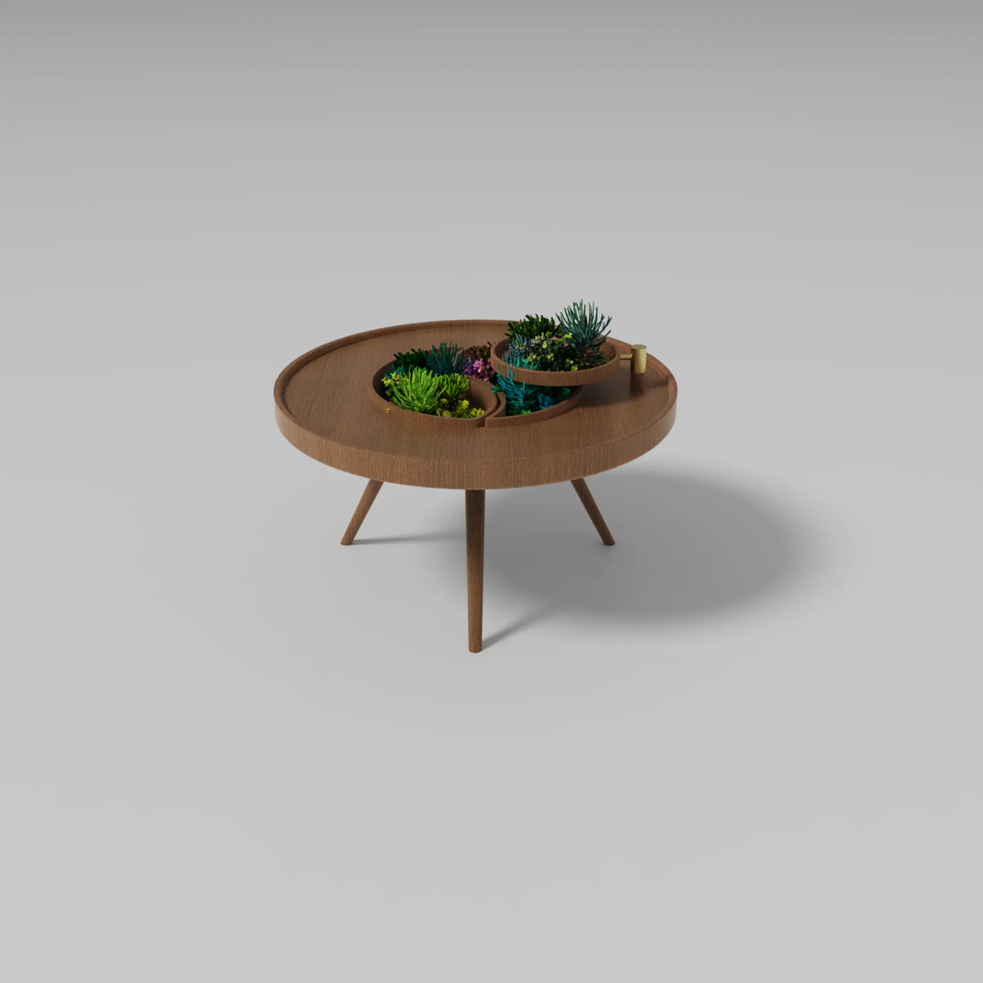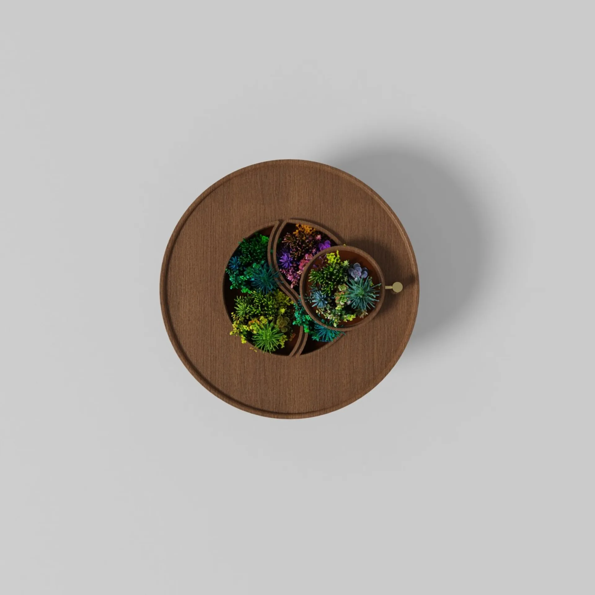 The idea behind the design was to bring greenery into the home and positively impact well-being. It is ideal for small spaces where there may not be an additional surface space to dedicate to plants. The design has a rotatable stand and trays for placing plants.