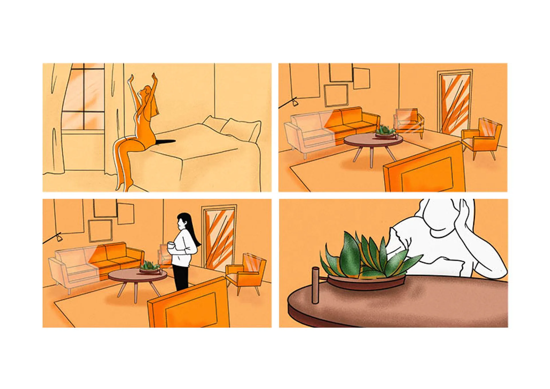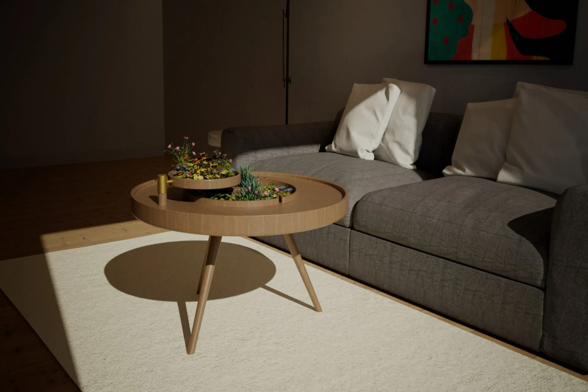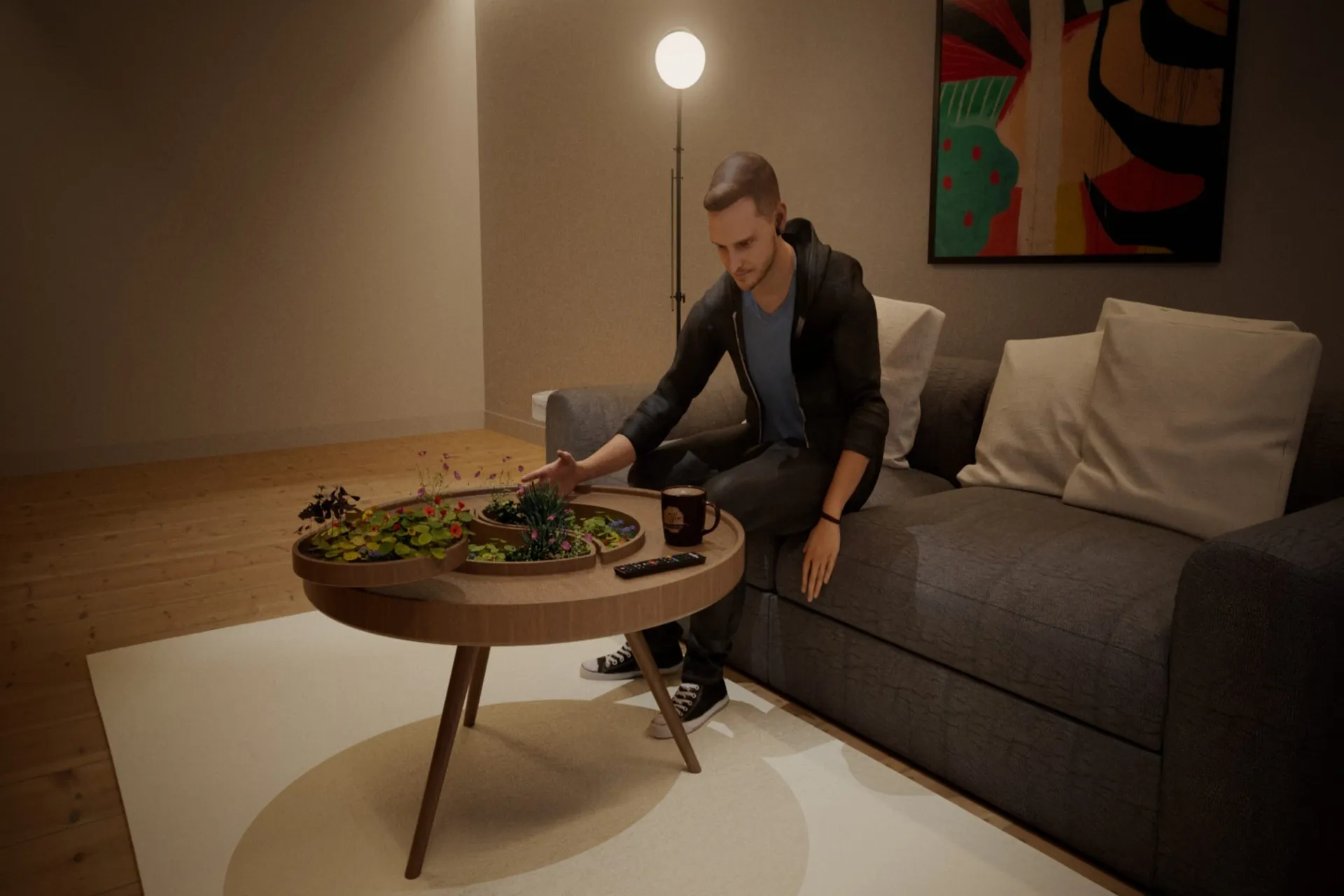 The idea behind the design was to bring greenery into the home and positively impact well-being. It is ideal for small spaces where there may not be an additional surface space to dedicate to plants. The design has a rotatable stand and trays for placing plants.
