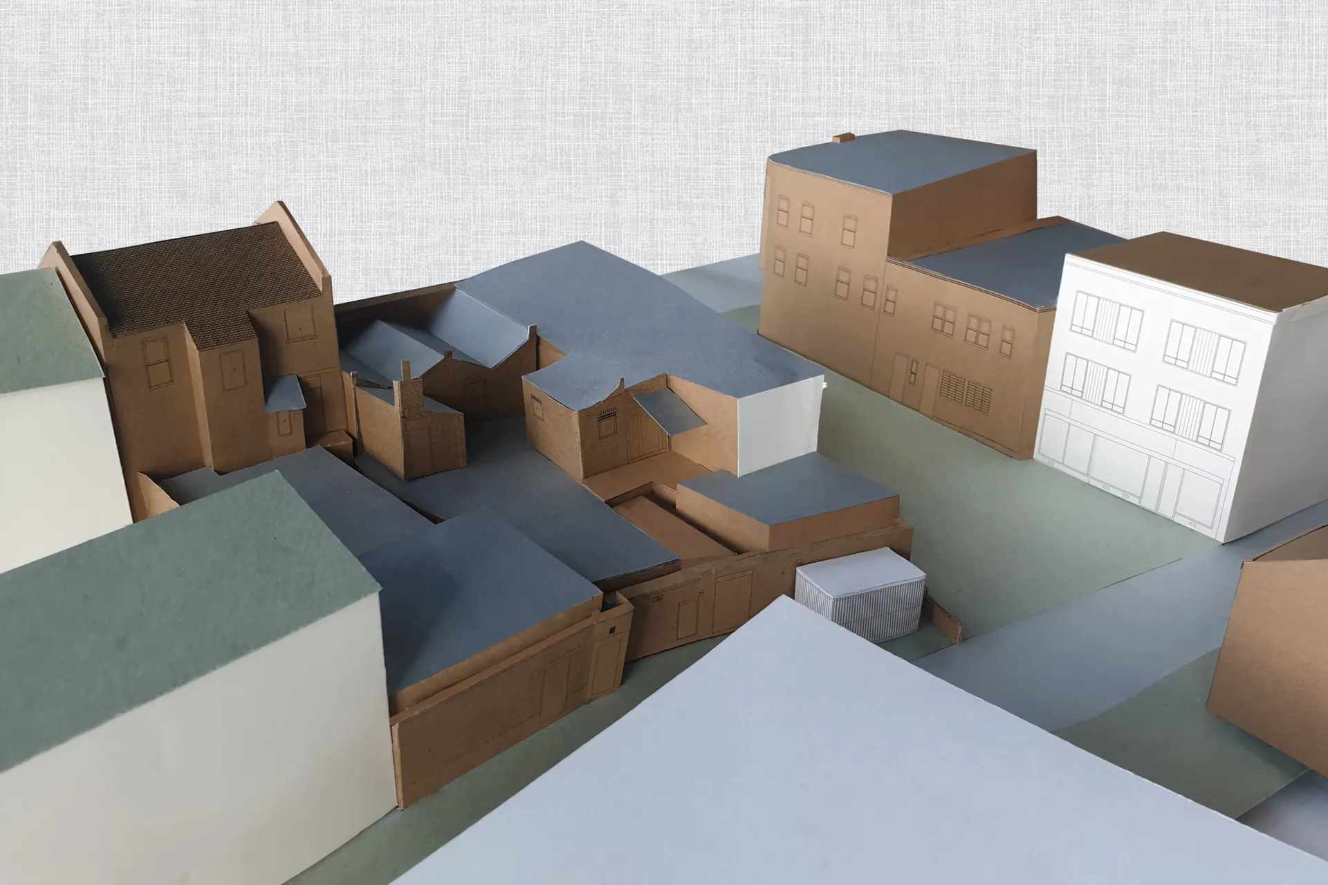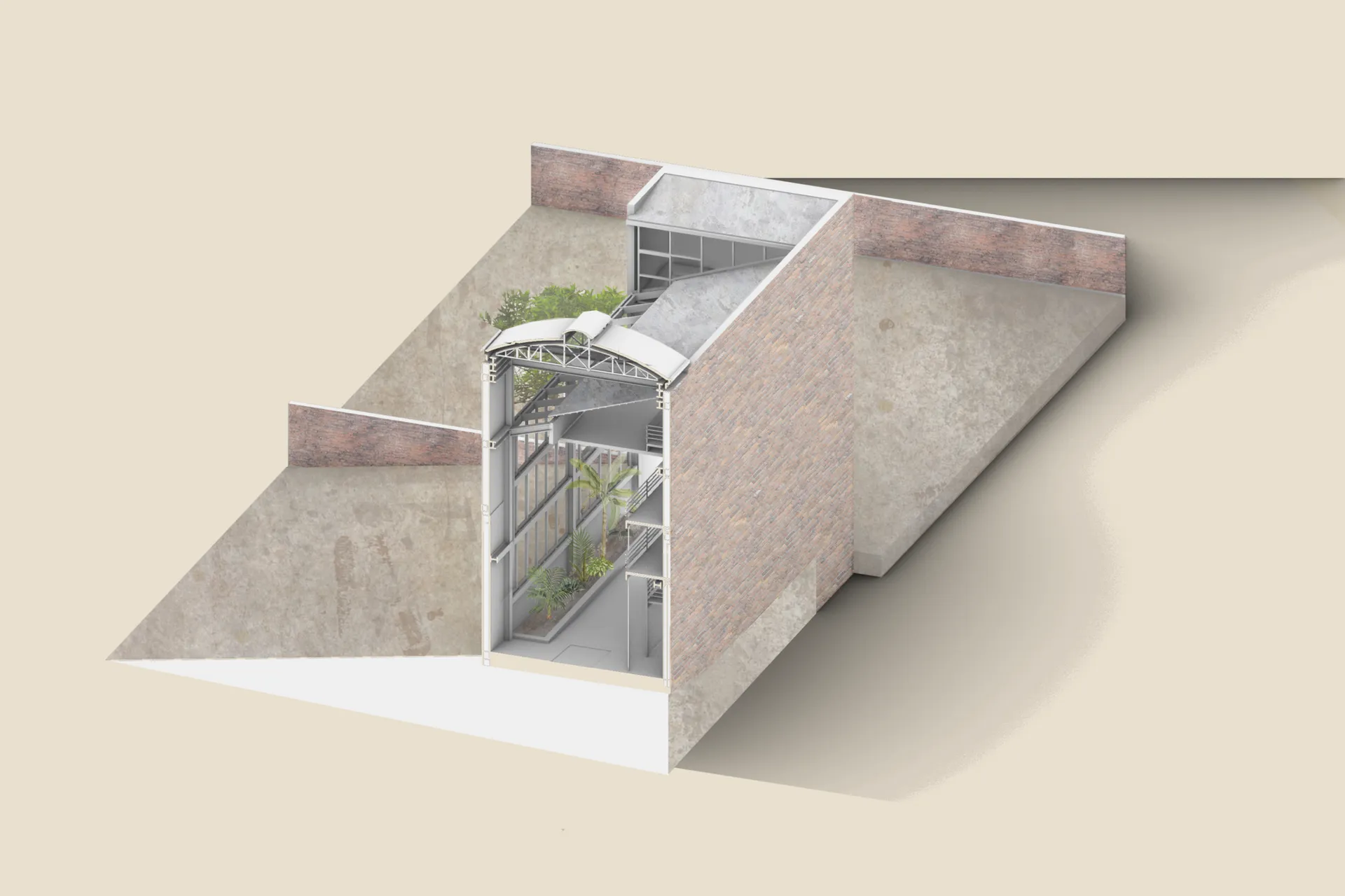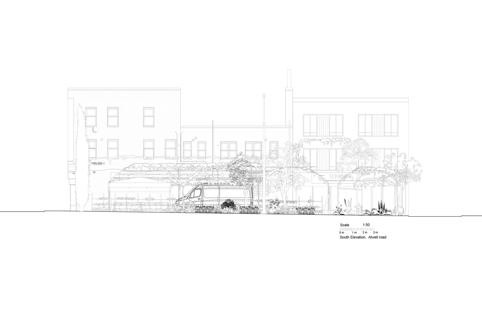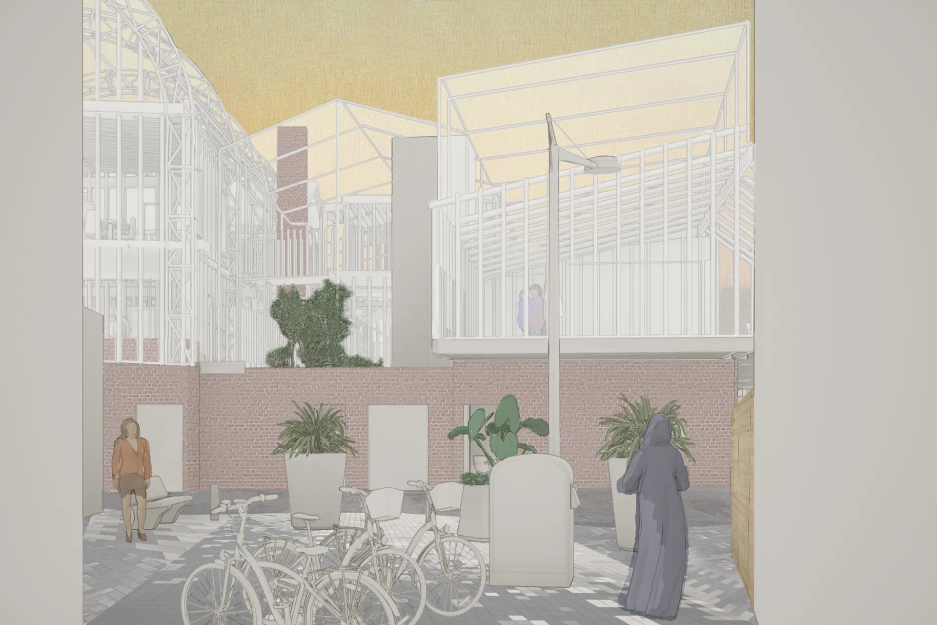 The site of my thesis is located on Rye Lane in Peckham. I propose a “school for adults”, where people can come together and learn anything from music and pottery to German literature and economics. The building consist of series of small structures erected over the backs of existing storage rooms, located in the rears of four houses along Rye Lane. The project also seeks to extend the high street, bringing it to a smaller parallel road via a rain garden, which indices pedestrians to veer off the main road.