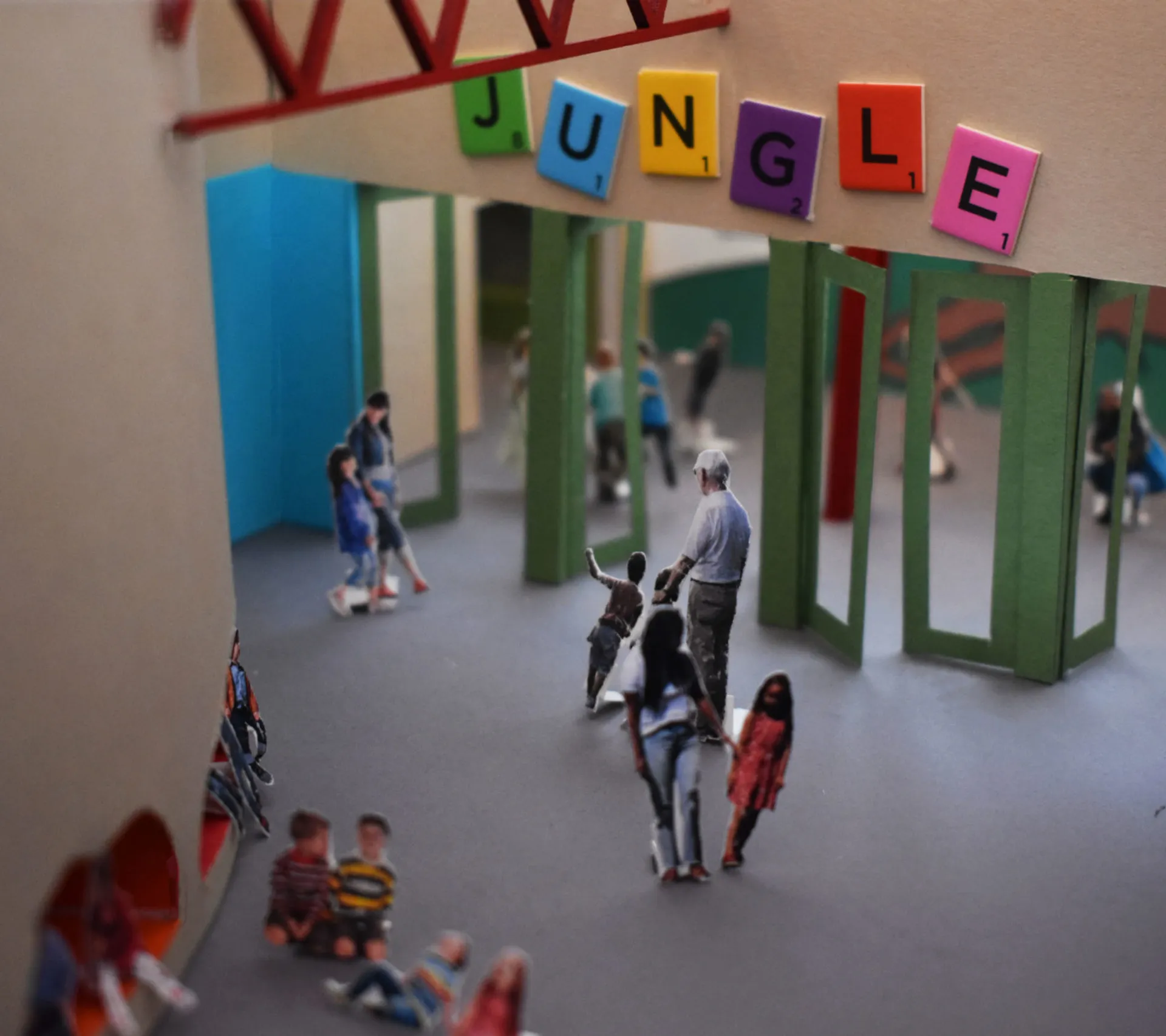 I responded to the brief by designing a theatre which appeals to a younger audience. Children are always playing make-believe, which can be considered a form of theatre, so a space where they can widen their imagination and improve their confidence would not only be beneficial to the community, but it will also help to bring a wide-range of families to the theatre. Breaking down the idea that the theatre can seem intimidating, the Peckham Playhouse is a small community theatre which makes use of the existing building.