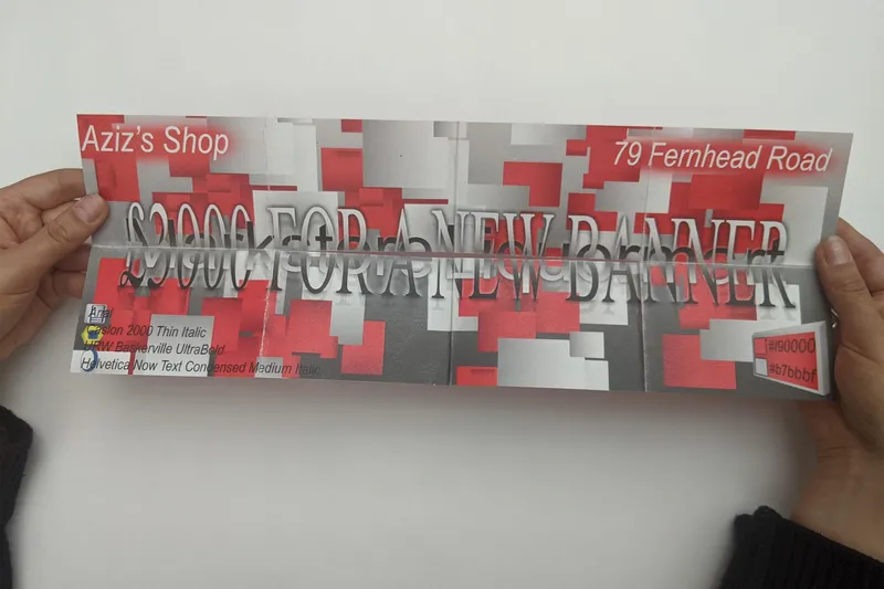 In order to predict what Future Graphic Design might look like you have to think about trends. Graphic Design trends form as a result of experimentation, errors and not being afraid to bend the ‘laws’ of Graphic Design. Corner Shop Banners can be seen to accidentally explore this anti-design concept, with their odd use of fonts and peculiar color pallets. These publications explore through quotes how from two separate shop owners, Sanjay and Aziz as they each share their contrasting thoughts on what their shop banner means to them, as well as a customer too who states that their banner is meaningless. So potentially this could shift his opinion potentially.