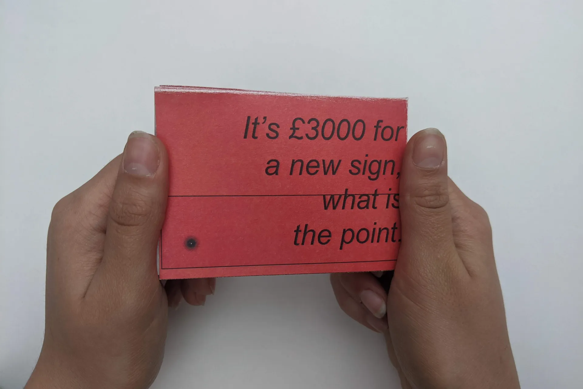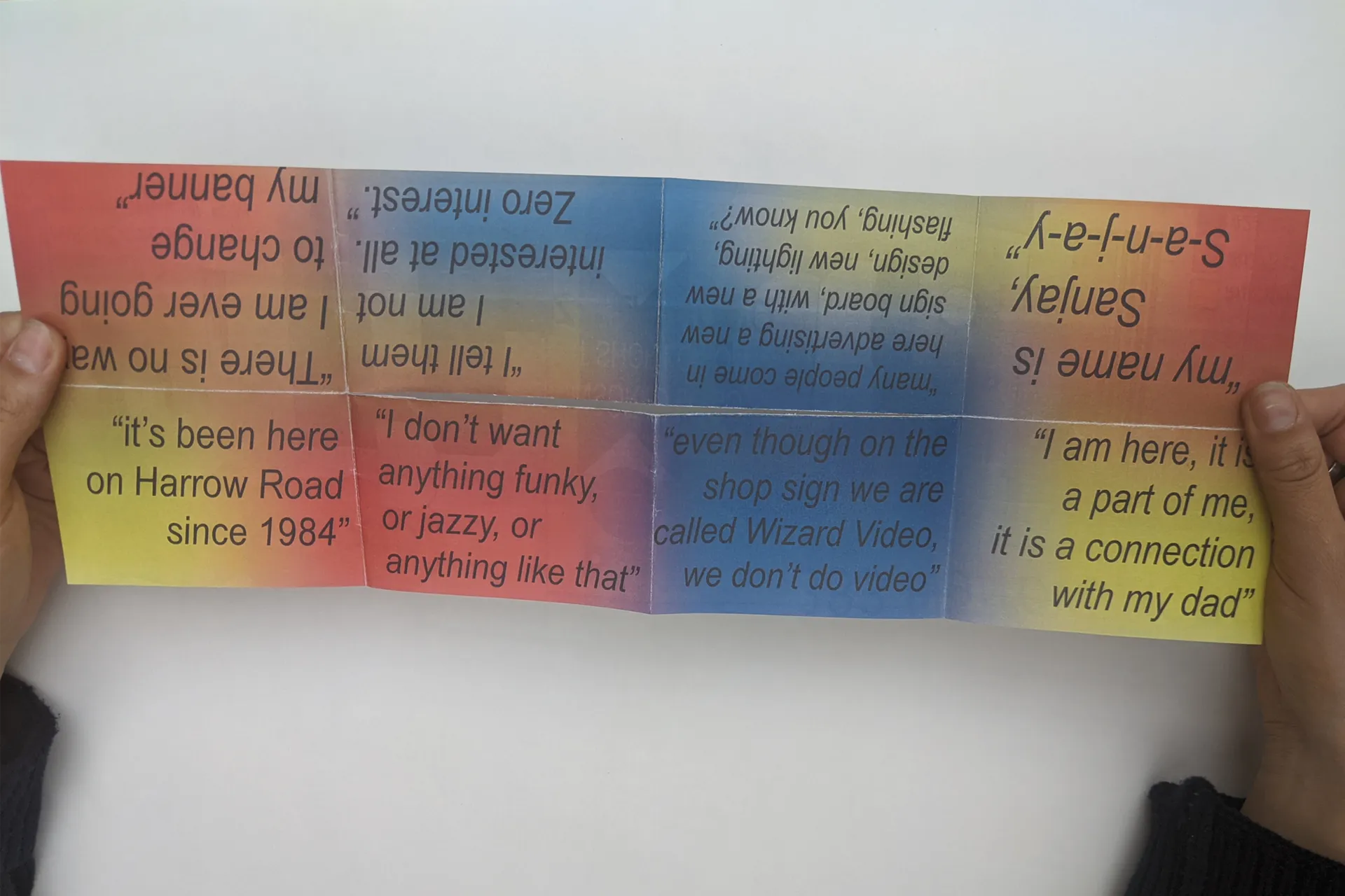In order to predict what Future Graphic Design might look like you have to think about trends. Graphic Design trends form as a result of experimentation, errors and not being afraid to bend the ‘laws’ of Graphic Design. Corner Shop Banners can be seen to accidentally explore this anti-design concept, with their odd use of fonts and peculiar color pallets. These publications explore through quotes how from two separate shop owners, Sanjay and Aziz as they each share their contrasting thoughts on what their shop banner means to them, as well as a customer too who states that their banner is meaningless. So potentially this could shift his opinion potentially.
