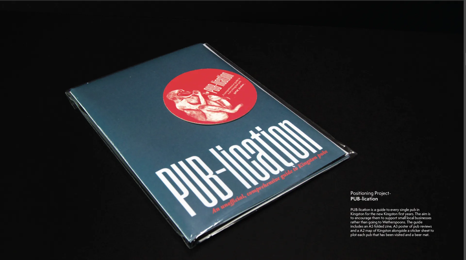 I think humour is often an under appreciated tool in design despite people being so receptive to it. I have tried to utilise humour in my project PUB-lication, a comprehensive guide to every single pub in Kingston for first year uni students. For the same price of a pint you can purchase your own copy at @pub_lication_ on instagram!