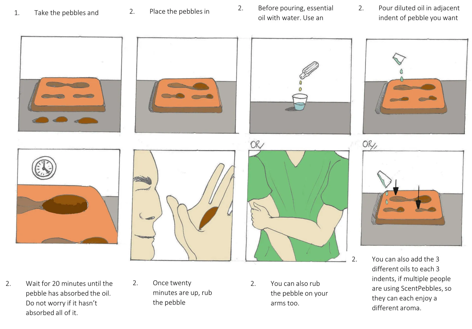 Scent Pebbles was designed for slowing down and promoting a sense of healthy mindfulness in our everyday life. Not only can the one individual use it, but thew experience can be enjoyed as a family or together as friends.
