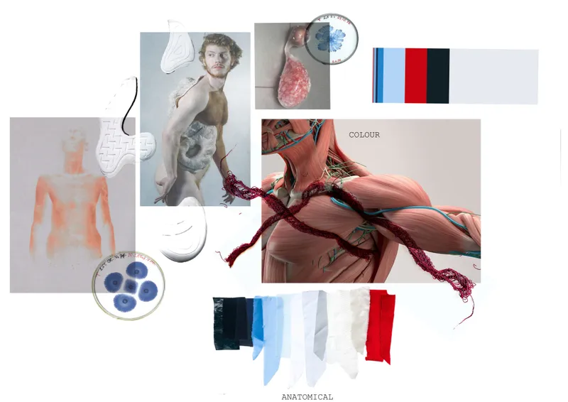 Anatomical Spring/Summer collection explores the concept of healing and recovery in the realm of wellness. The human body is one the most delicate creations and I was fascinated by the intricate positions and textures of the human anatomy, alongside the recovery methods athletes use to heal the body. The collection celebrates movement through a series of light-weight weight and exaggerated recovery jackets to optimise human performance; creating an experience for the wearer.