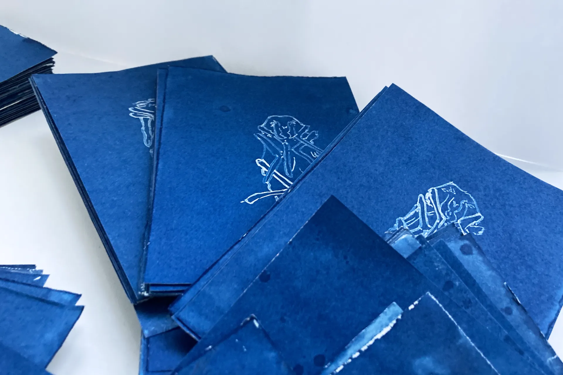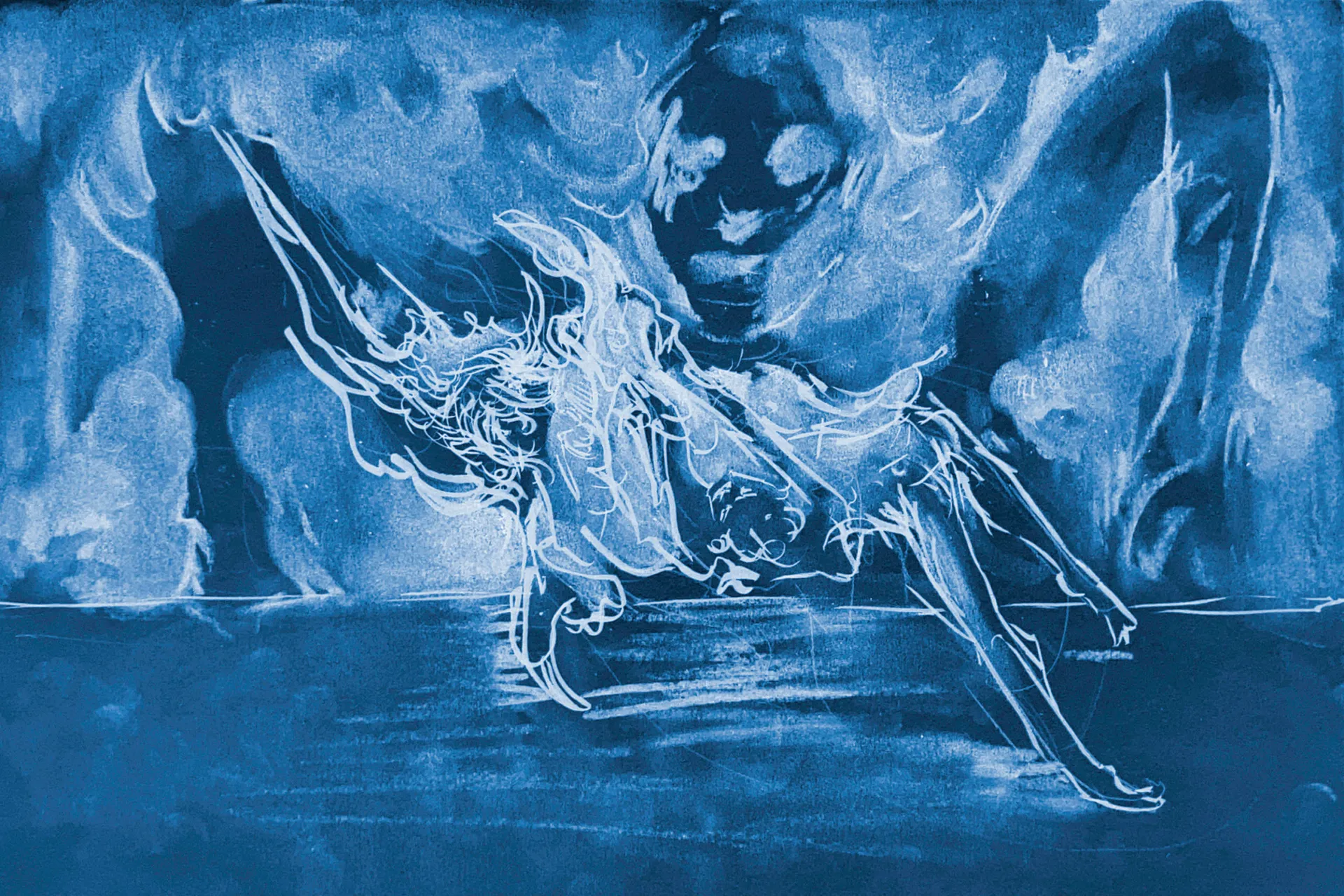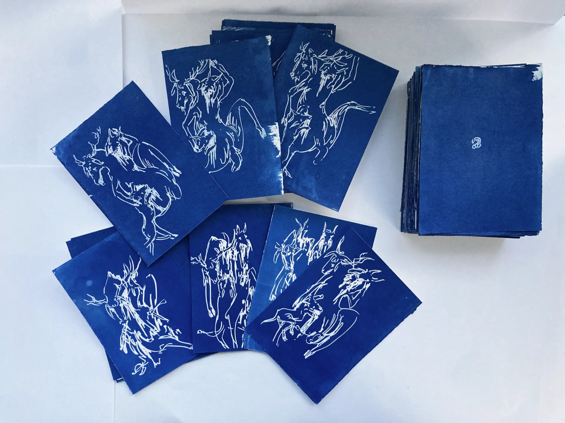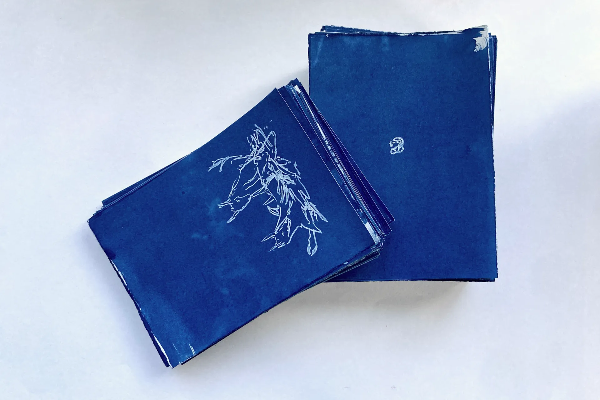 I’ve made a series of cyanotypes, comparing the tonal character and pace of scientific and mythic metamorphoses. I was interested by the use of myths in antiquity to explain the origins of animal/plant species and the reasons behind natural disasters. They function in a way as a consolation: a reassurance that such terrors are ultimately controlled, despite the human-like inconsistencies of the ruling deities.