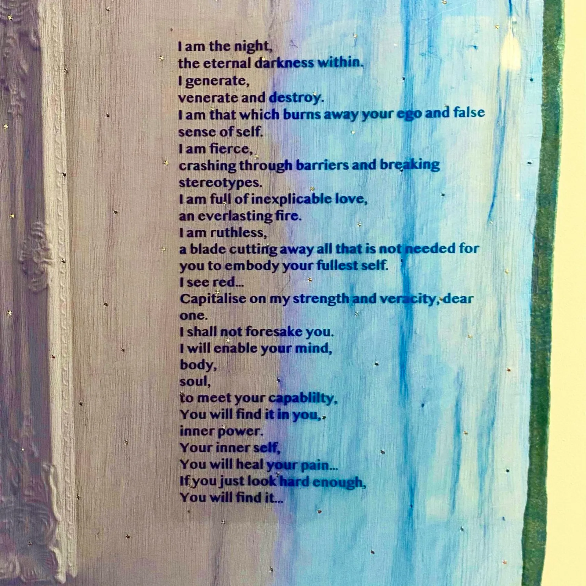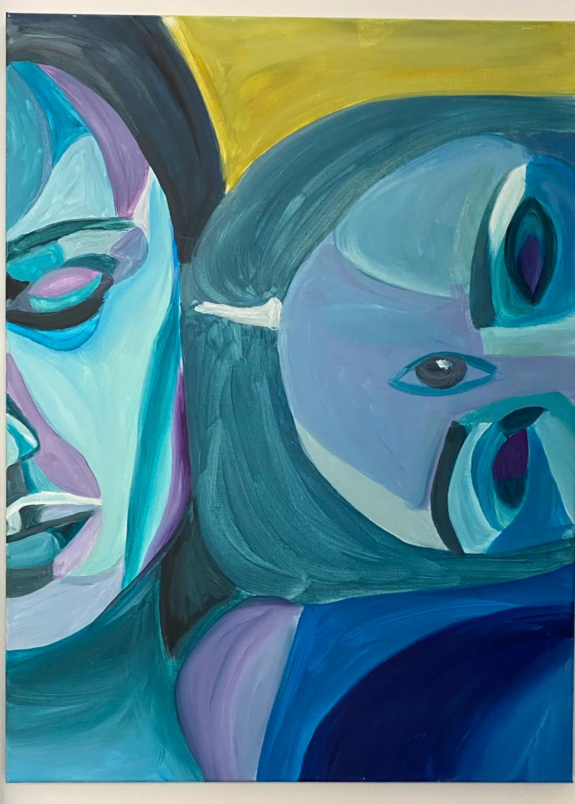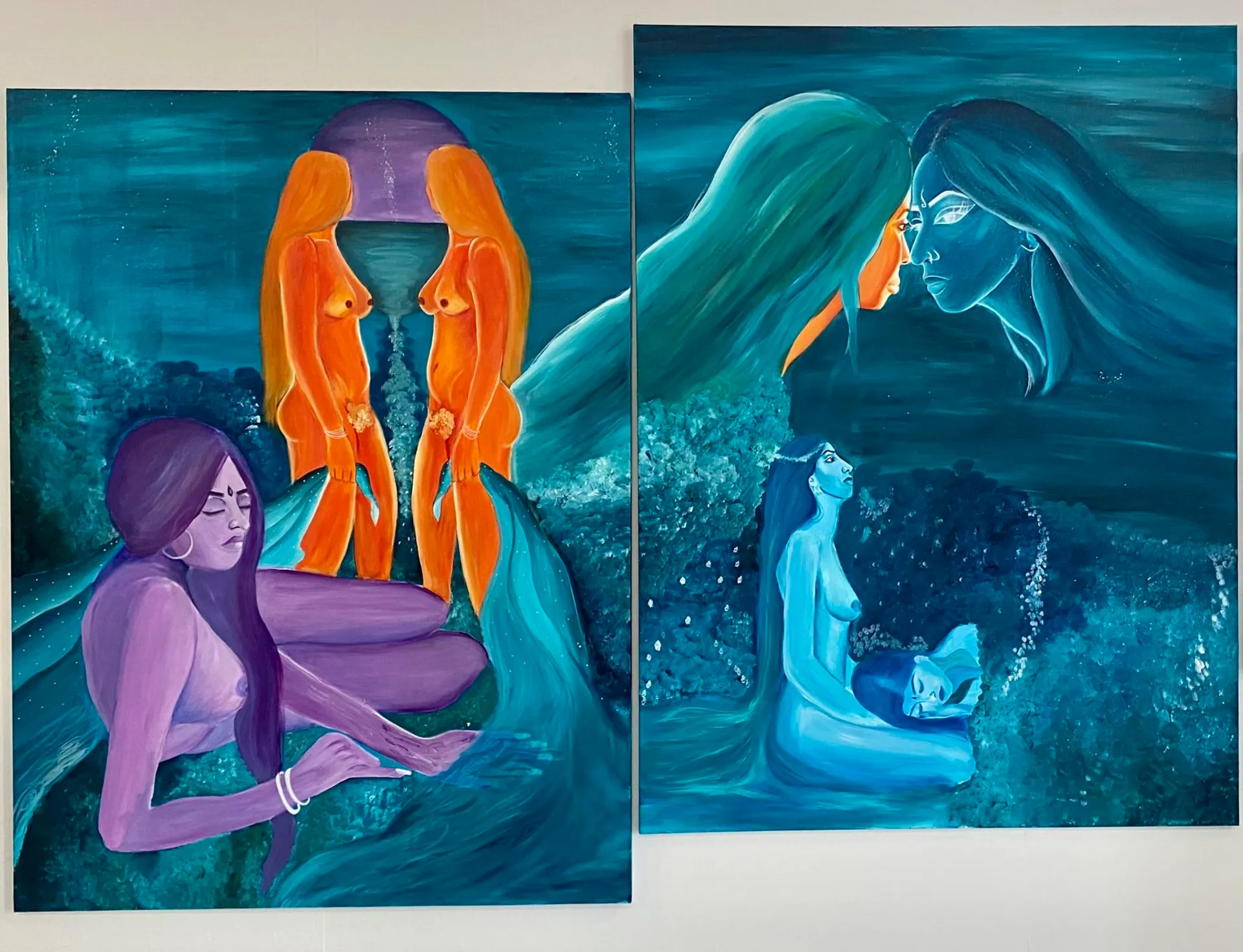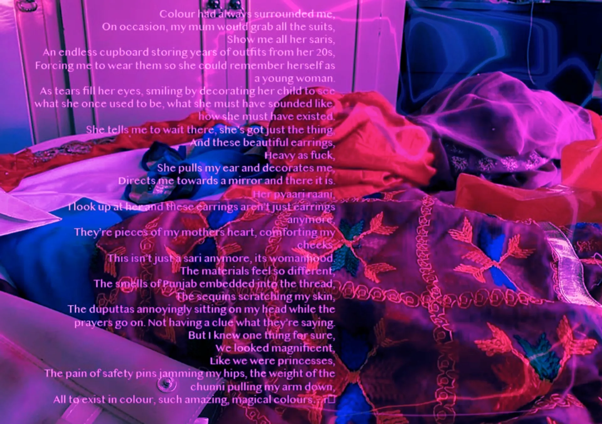 Through painting and photography, Simran explores the relationship with the self and how she has experienced issues around identity as a second generation British Indian woman. Her practice revolves around a confrontational narrative as well as selfhood by creating a powerful yet vulnerable space, allowing higher versions of the self to speak and challenge the regular self. Her portraits and figures all represent memories and feelings of developing a self caring and self dependent relationship.