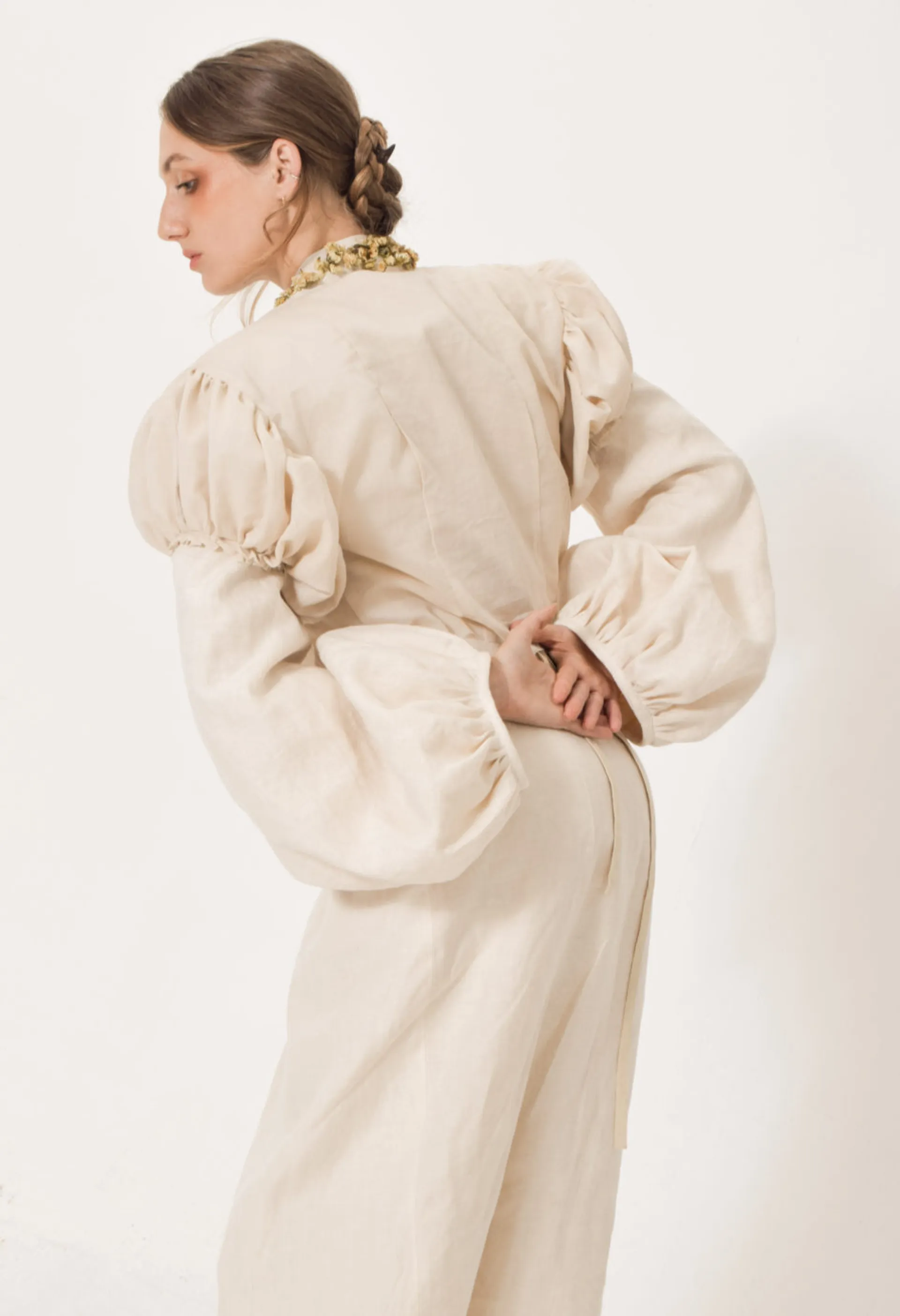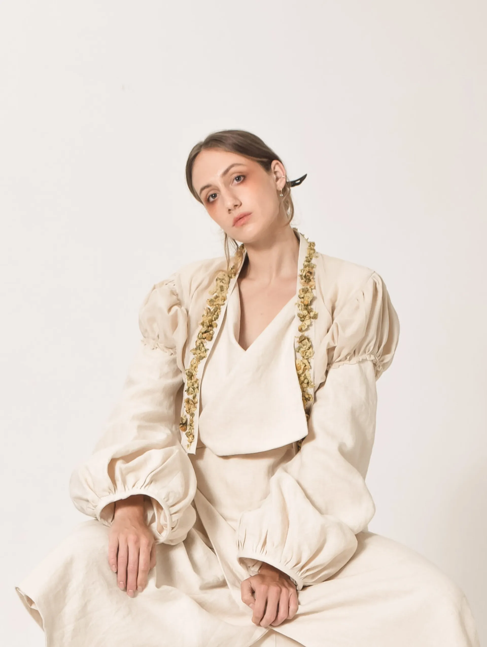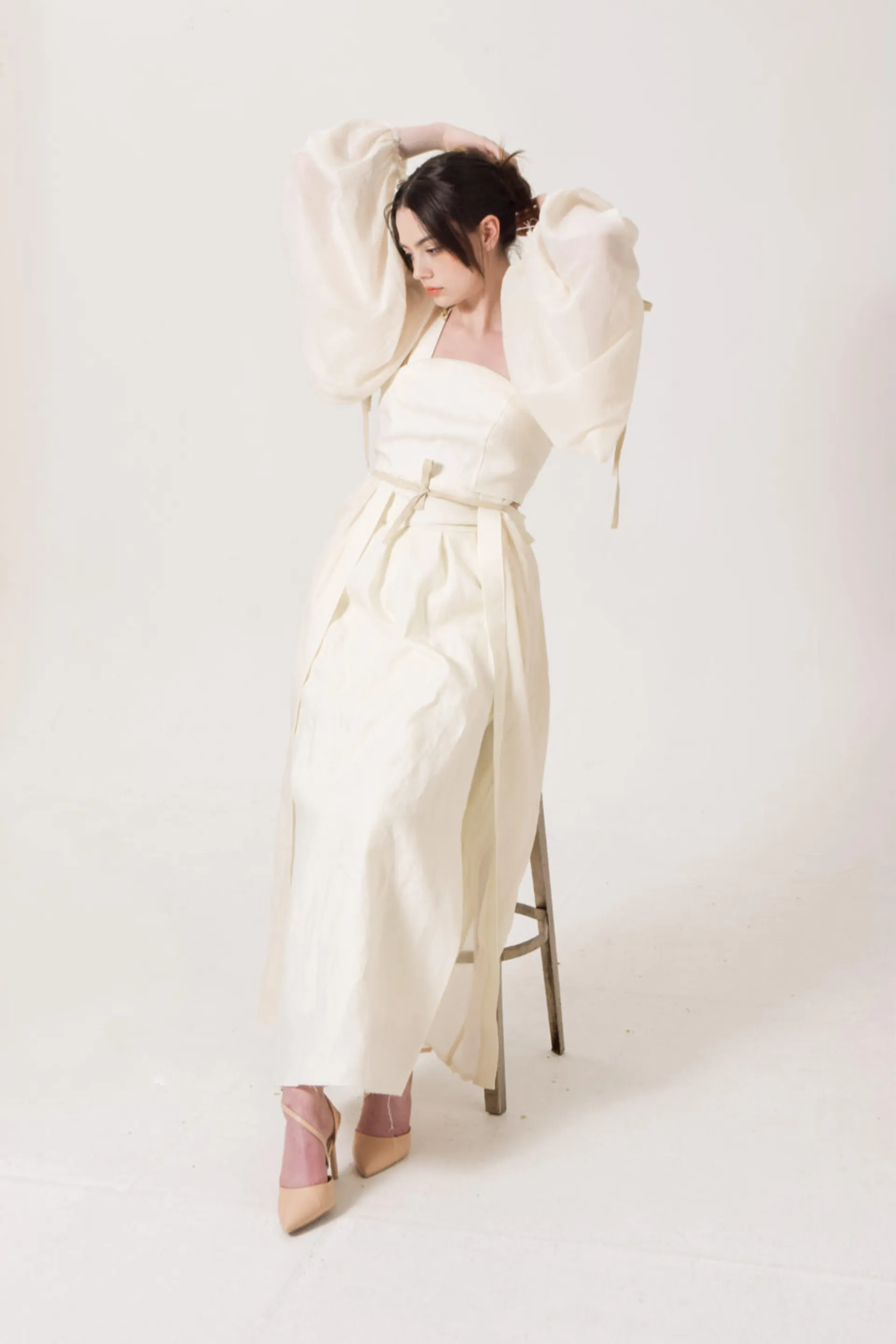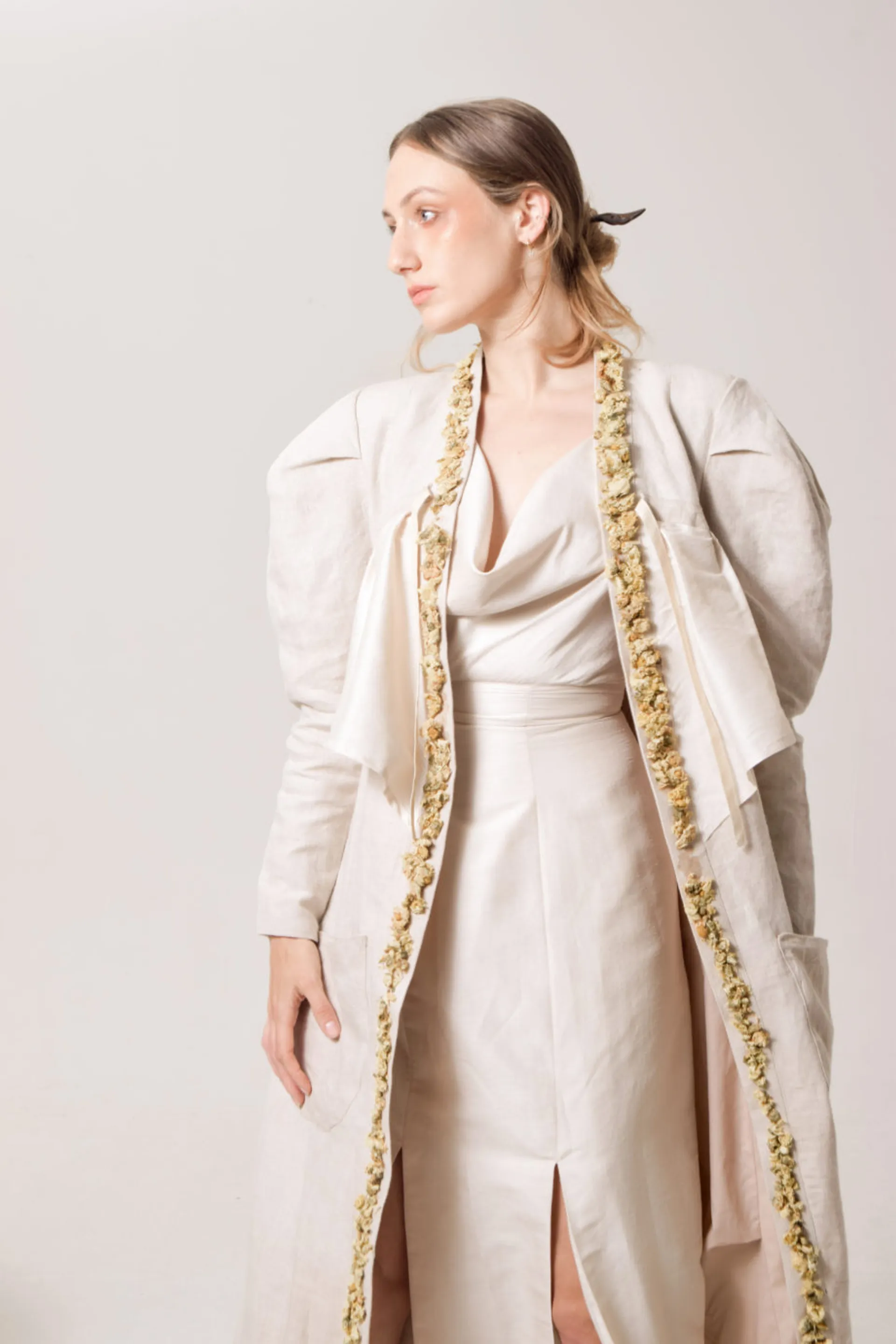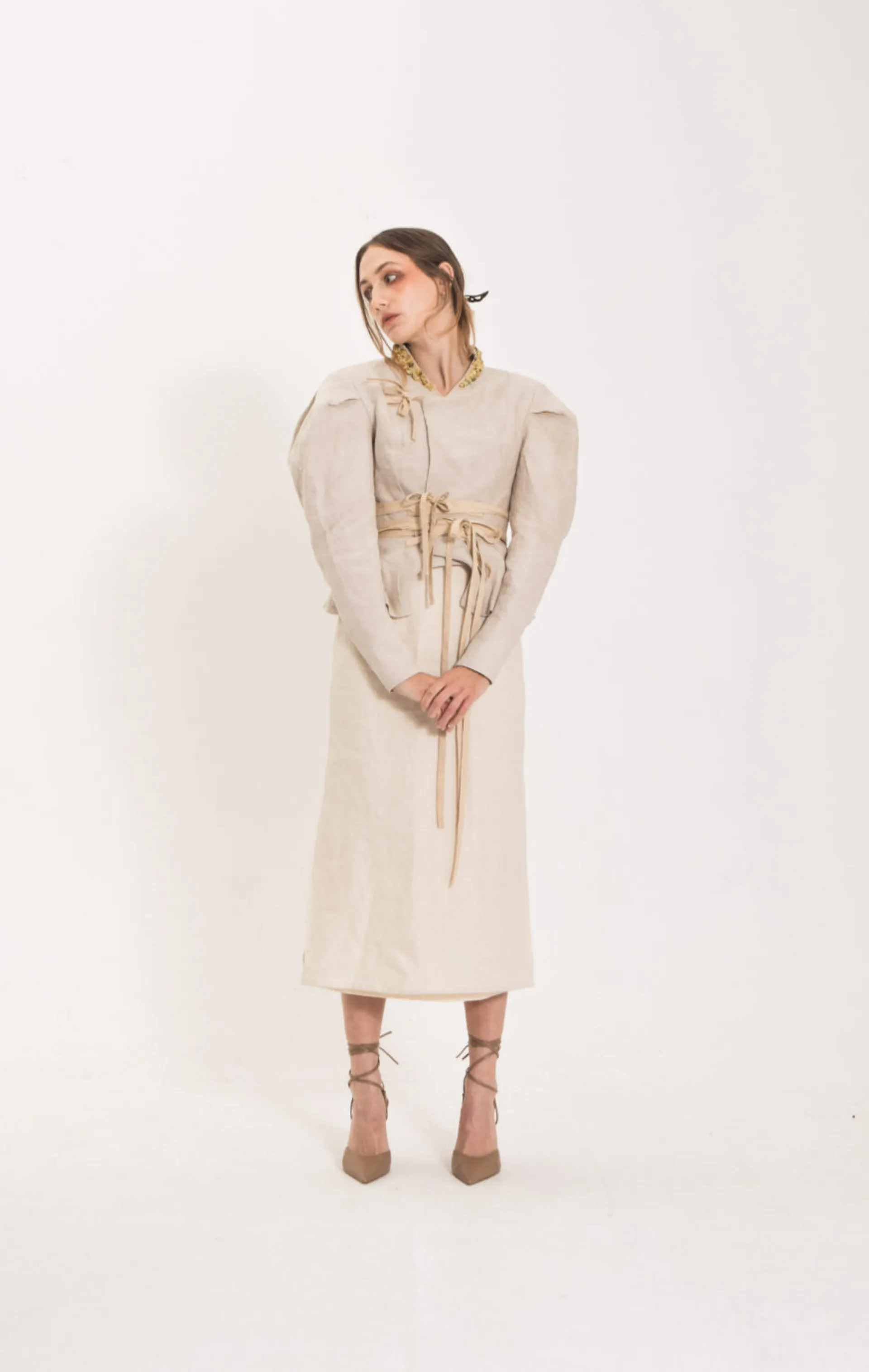 I refer to Chinese Tang Dynasty clothing as a reference as fat is beautiful. At the same time I think today’s society is very harsh on fat women, so I tried to show a large silhouette but tightly bound in some places with the garments.