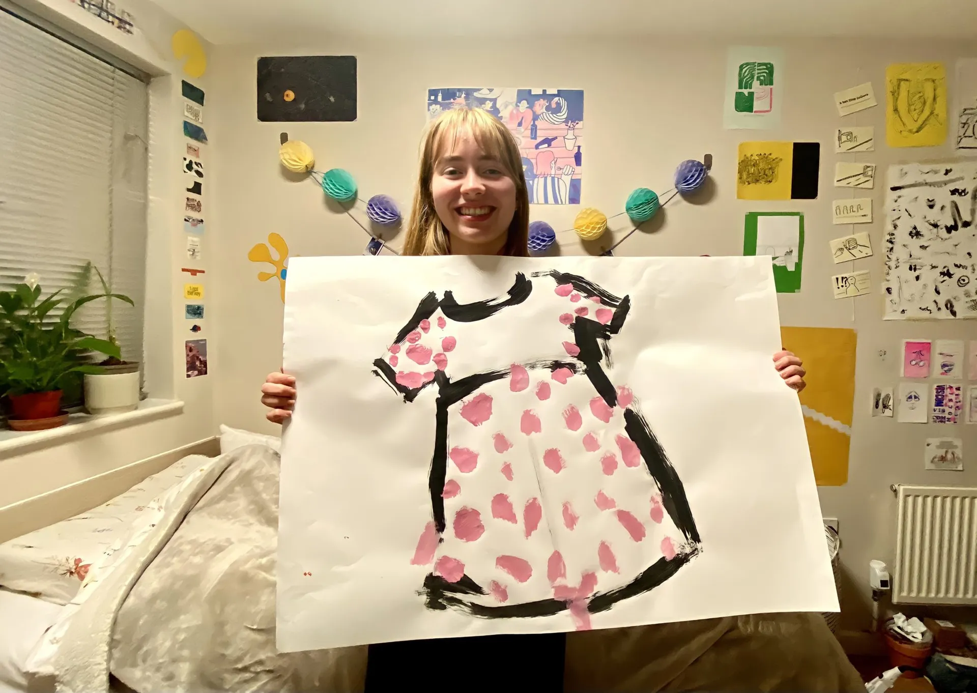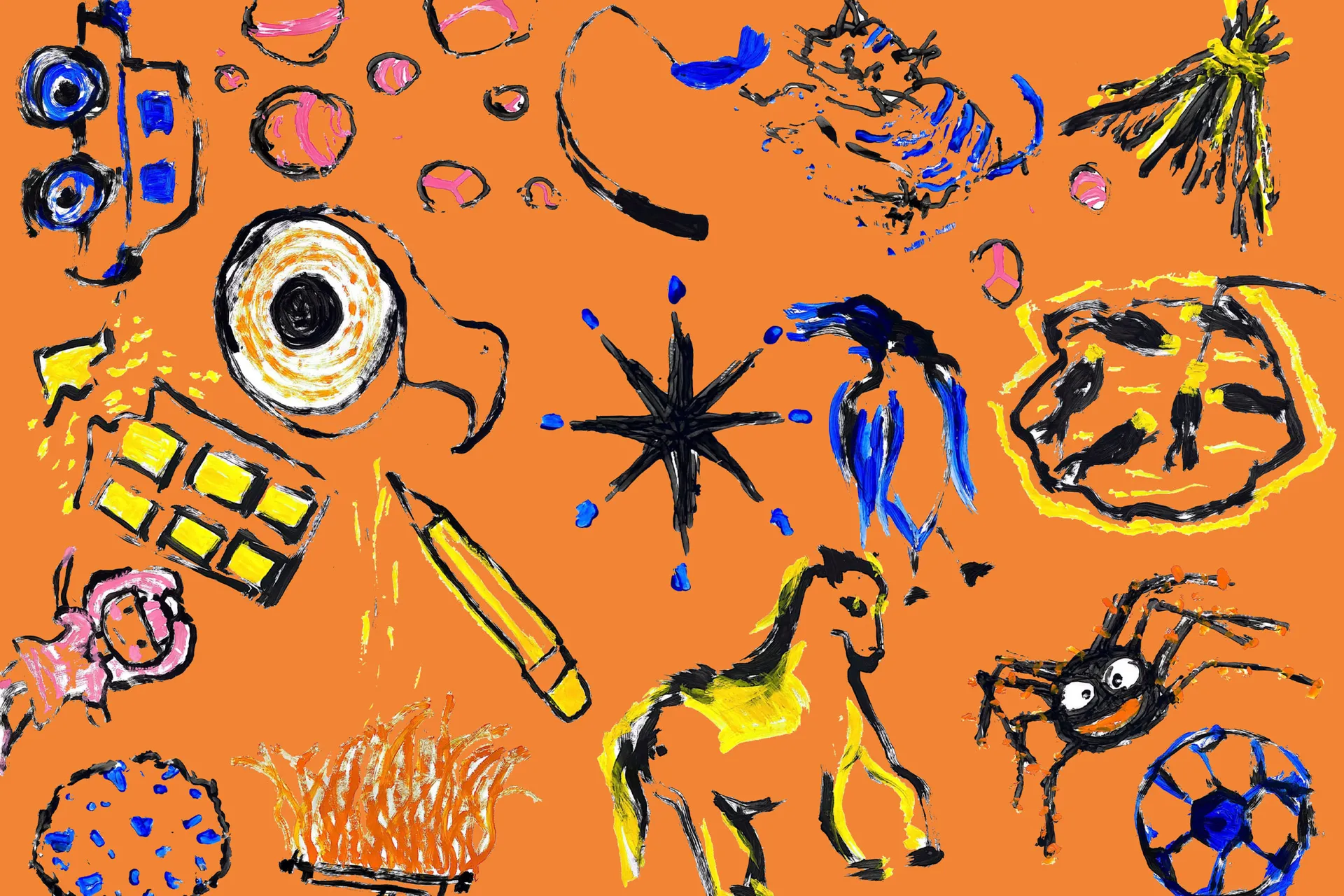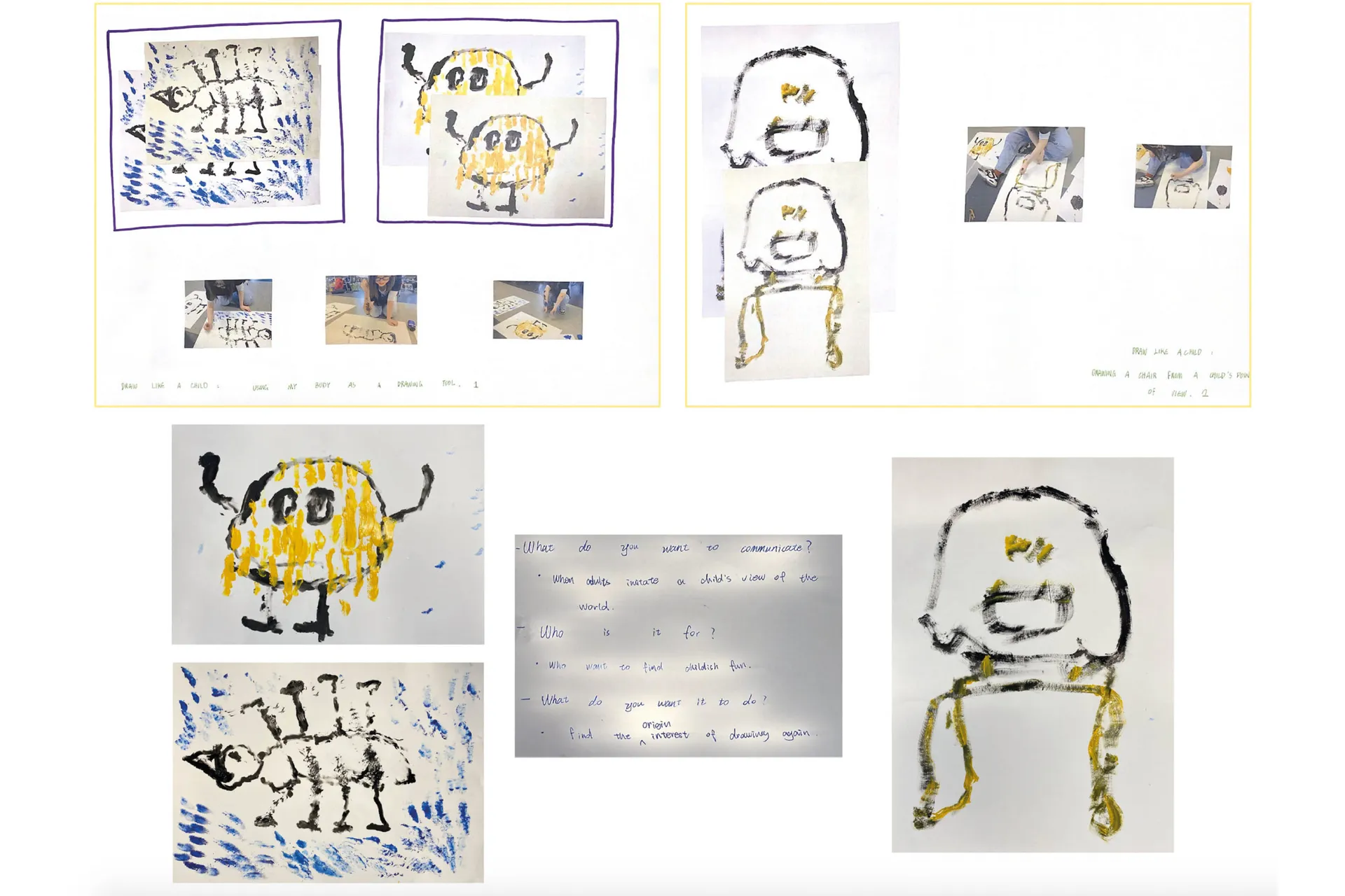 It’s a project about exploring childhood memories! I interviewed people about their childhood stories, such as their favourite toy or game as a child, what colour their childhood was, etc…And I recreated items with their impressions based on their answers, using their ‘childhood colours’. I have tried to imitate children by drawing with my elbow and crouching under the table in a childlike manner.