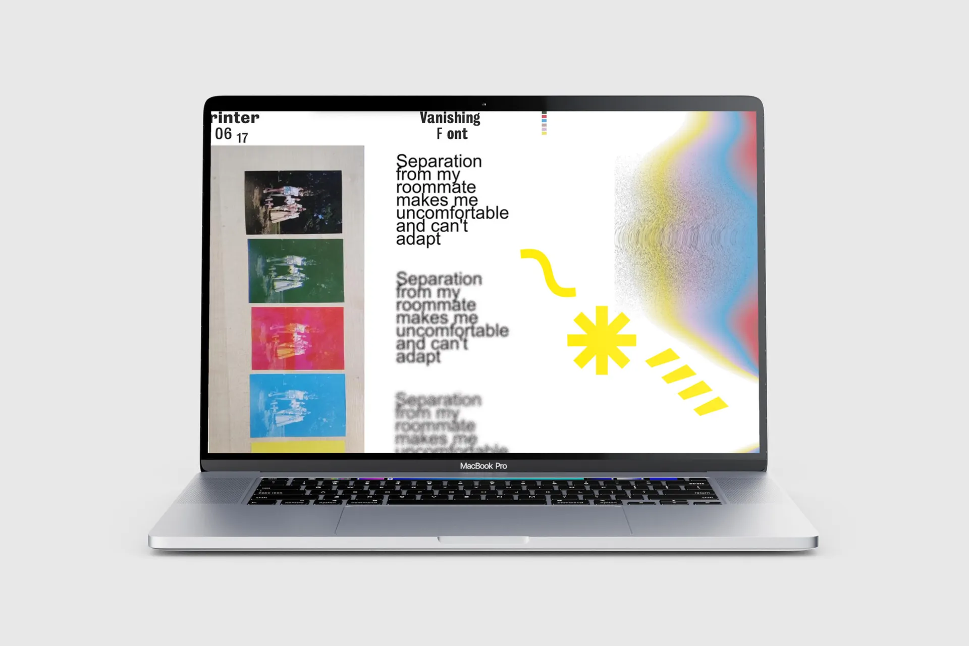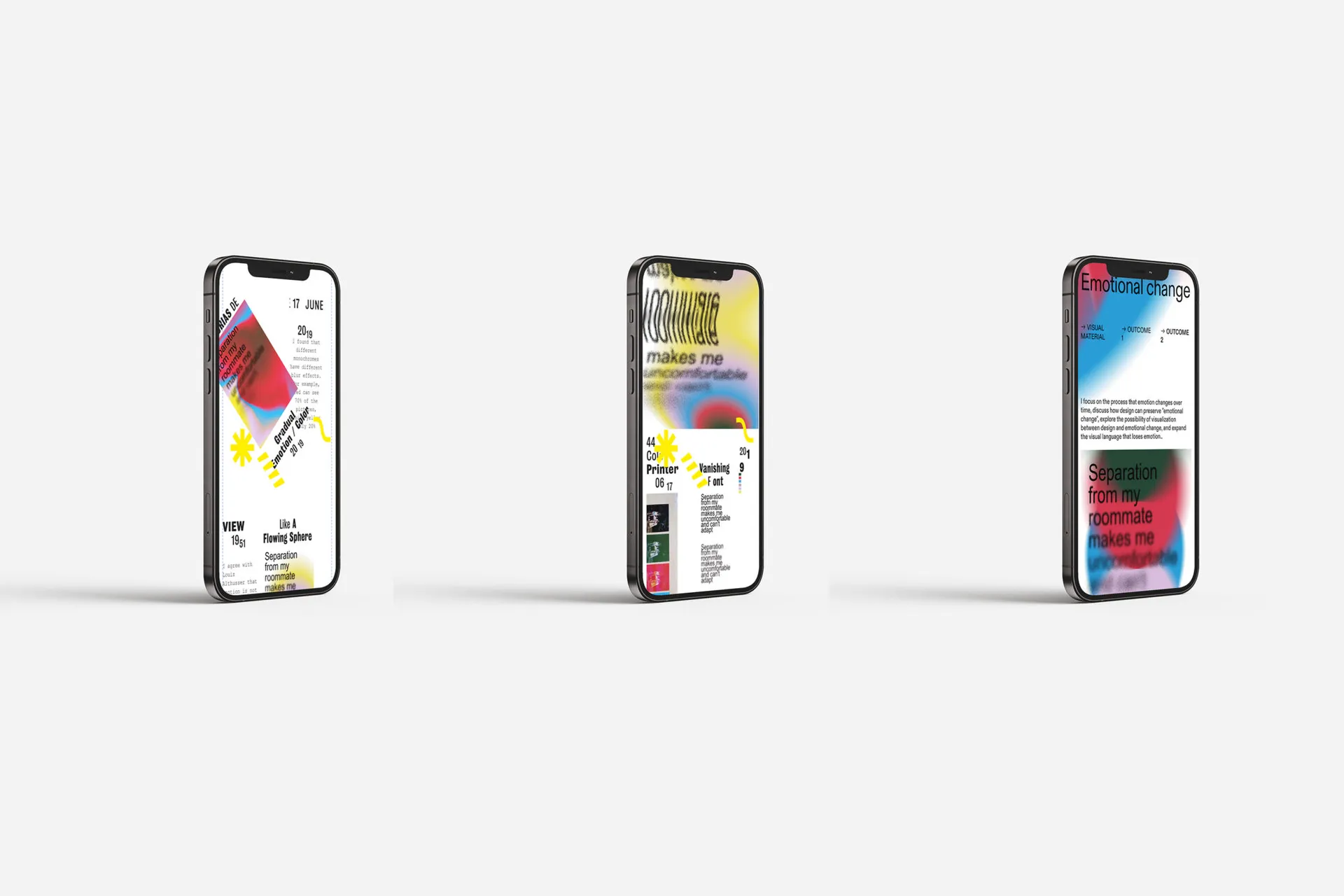My project focuses on the idea that emotion changes over time, and the possibilities of how design can preserve this ’emotional change’. The project explores the visual connections between the time, emotion, colour and typography and the end result is a website, which the audience can explore and consider these ideas in an interactive format.