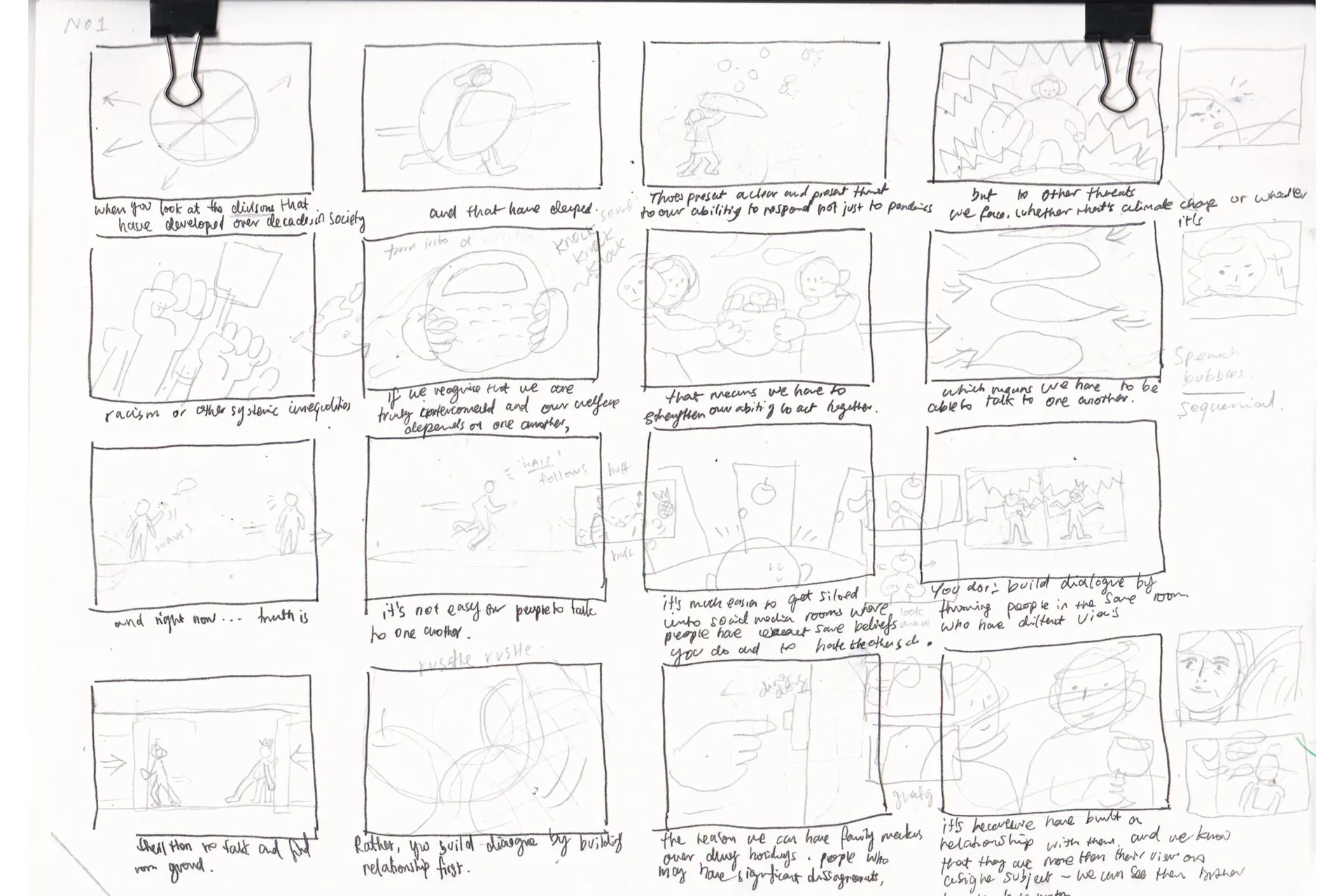 ‘Face to face is an animation commenced from the Moving image brief by the Royal Society for arts. The work builds on the transcript from the interview with Dr Vivek Murthy about loneliness and isolation amidst the polarising world. She uses the metaphor of peeling fruit to convey how we should see the people beneath the layers. To be able to communicate with one another, face to face.