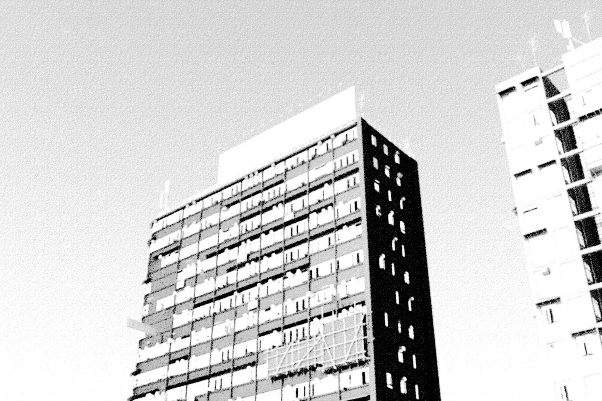 I processed a picture from my conceptual design and got a similar monochrome low-detail high-noise style. The low-detail and high-noise styles imitate the effect of underexposure when taking photos in low-light places. It is used to describe the life of people who are inverted black and white and unable to sleep at night.